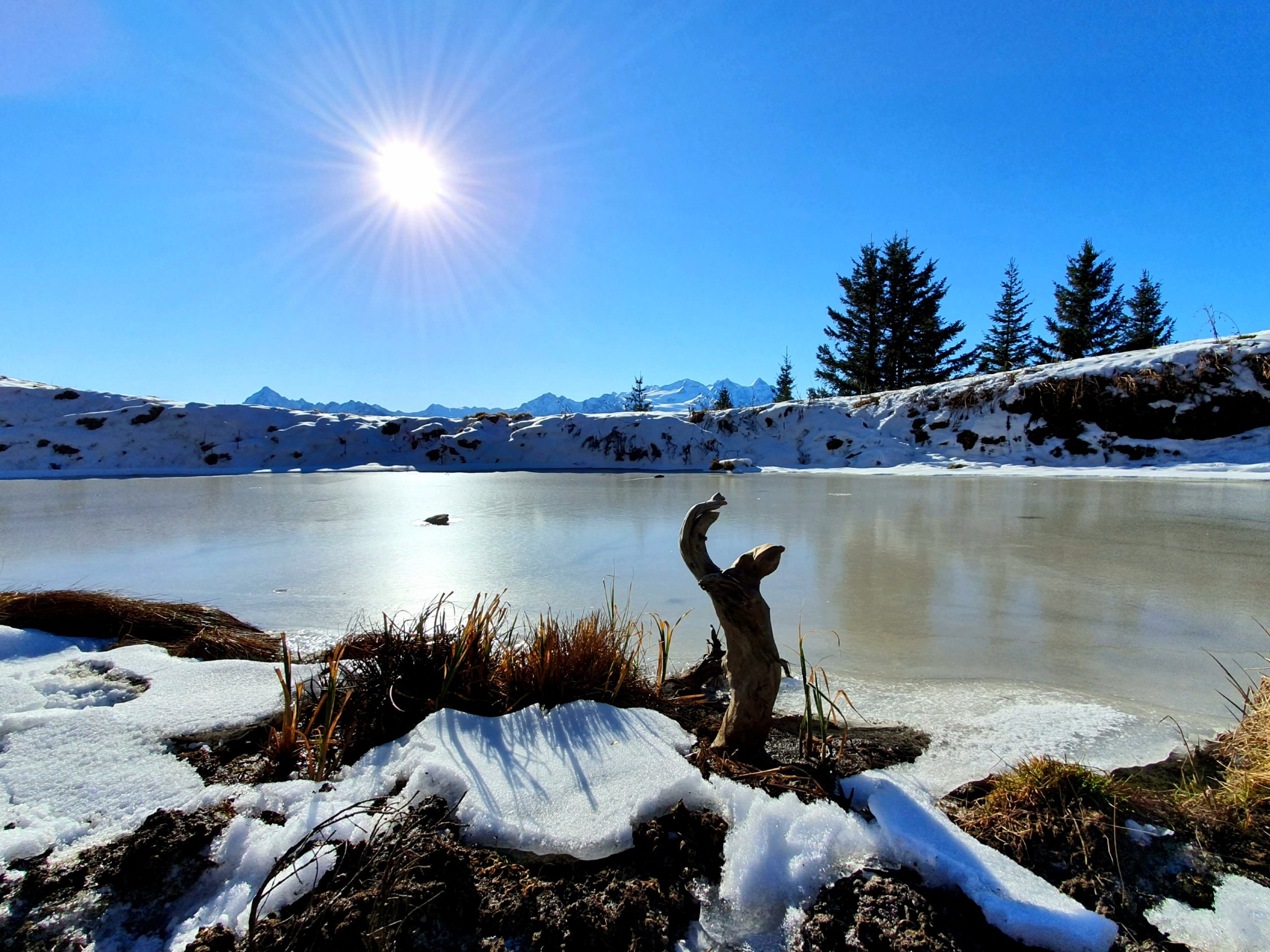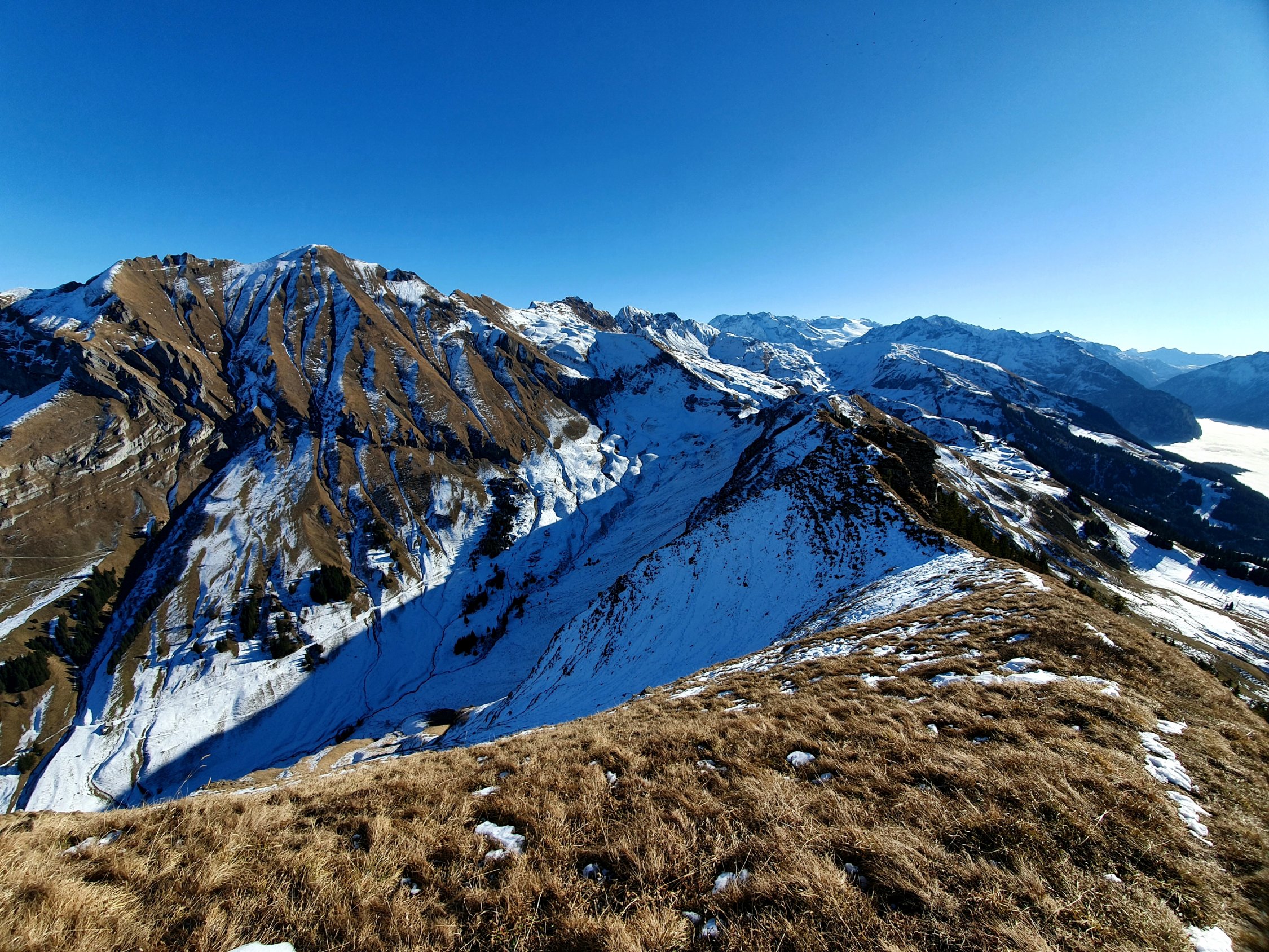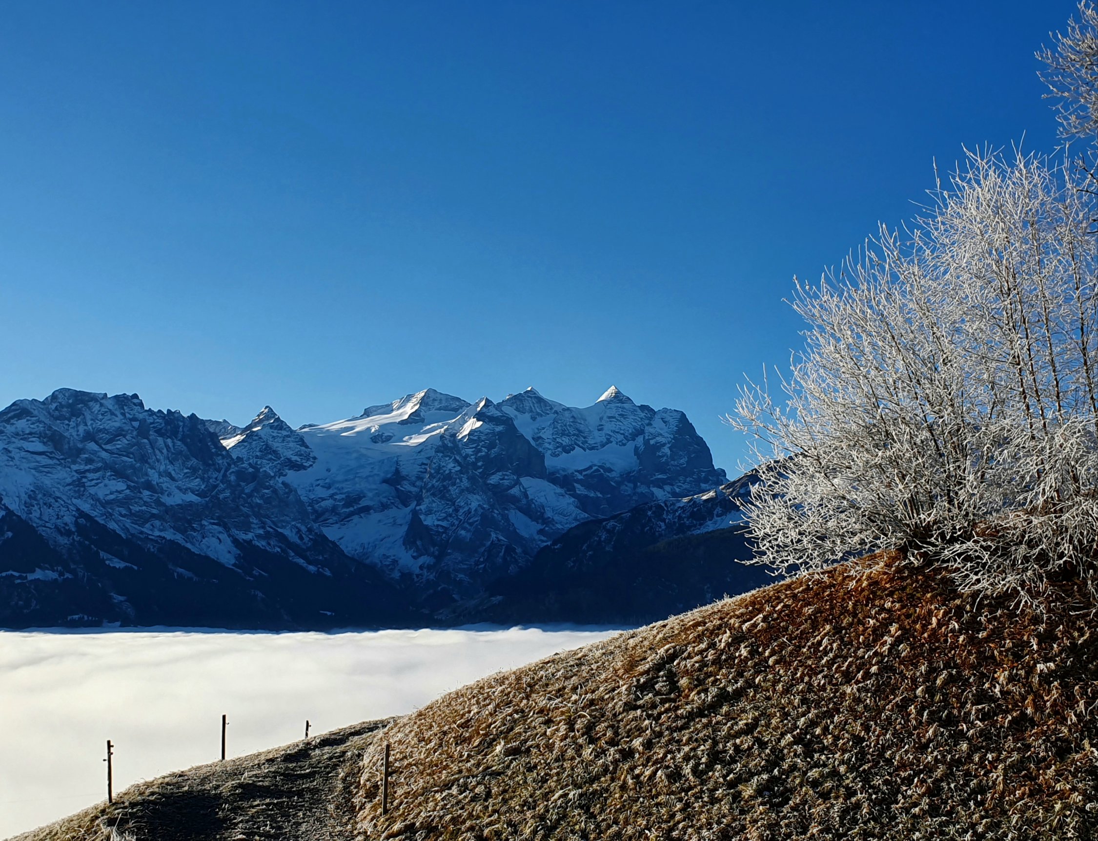 Der gut begehbare Grat vom Gibel via Chingstuel - Hohbiel bis Fruttli stellenweise schneebedeckt, an diversen Stellen darunter Eis. Fast durchgehend gefrorener Boden.