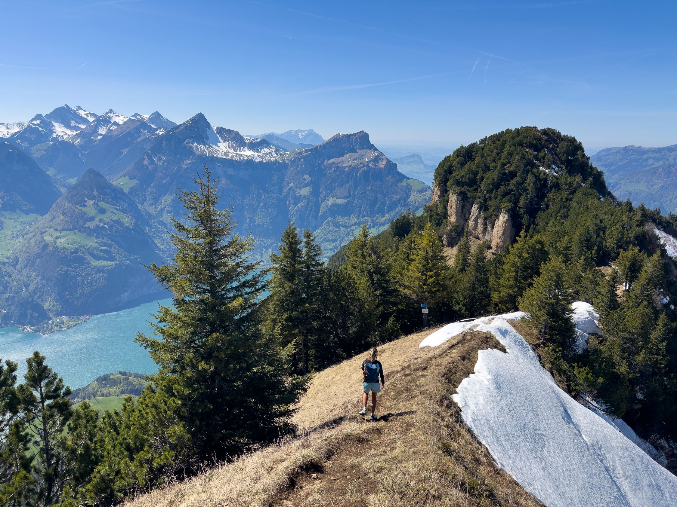 Le sentier Wildheupfad entre Oberaxen et Franzen est toujours officiellement fermé et nous choisissons l'itinéraire le plus direct en montant jusqu'à Giebel, puis Franzen. Tout est sec jusqu'au col entre le Blutt Stöckli et le Rophaien.