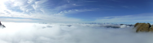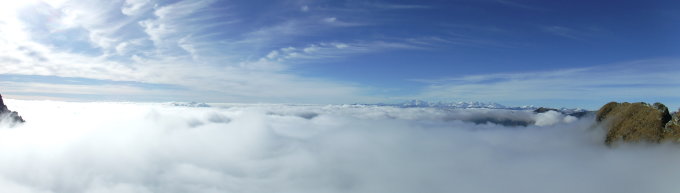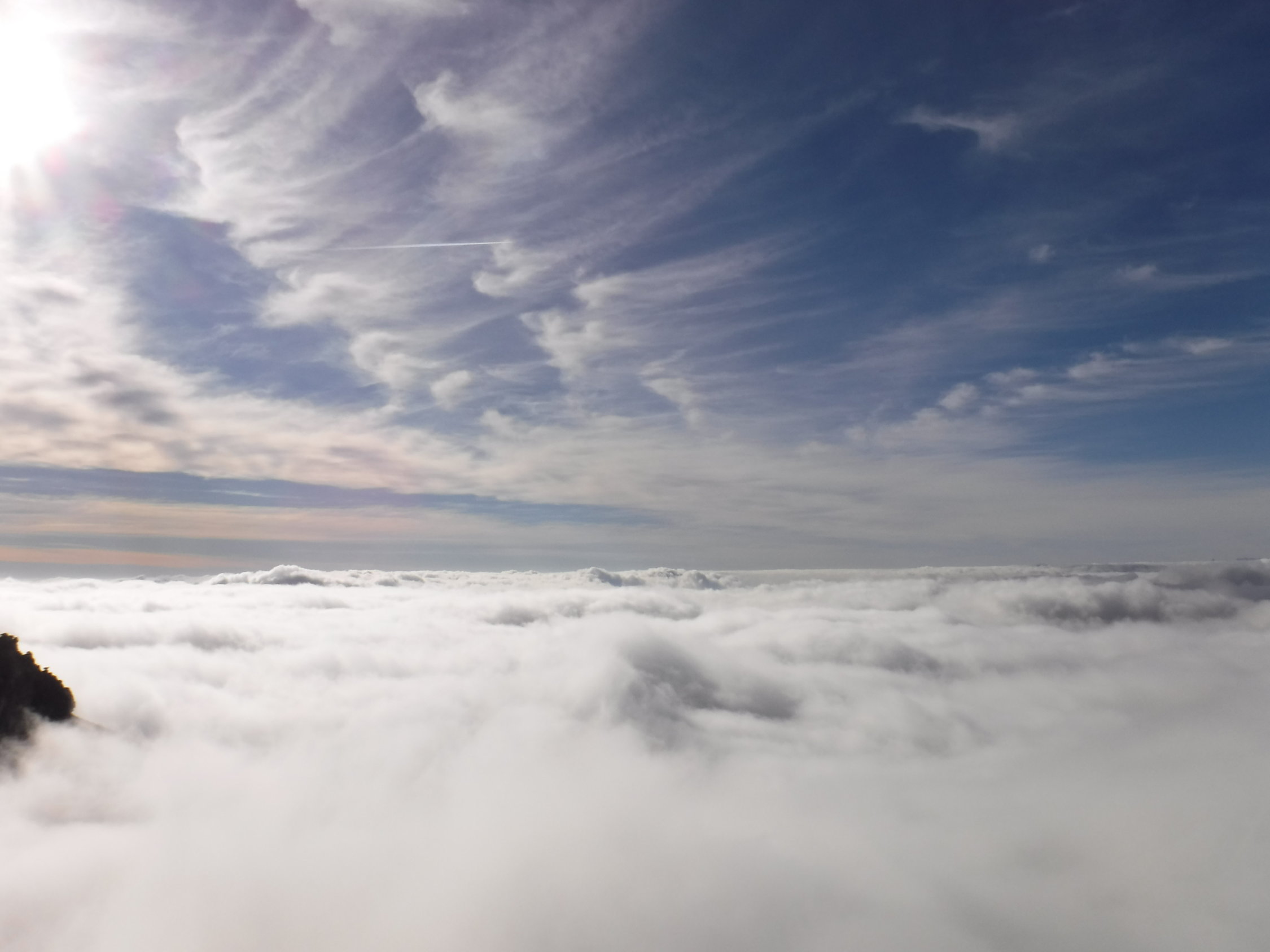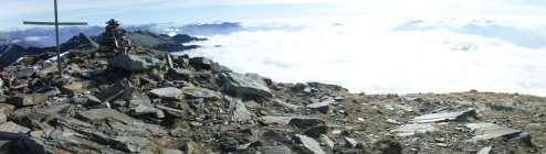 Tourenbeginn um 07:15 Uhr bei 6°C unter bedecktem Himmel. Erst auf dem NW-Grat des Bergs wich der zähe Nebel der Sonne. Ab dann schönstes Spätherbstwetter.
