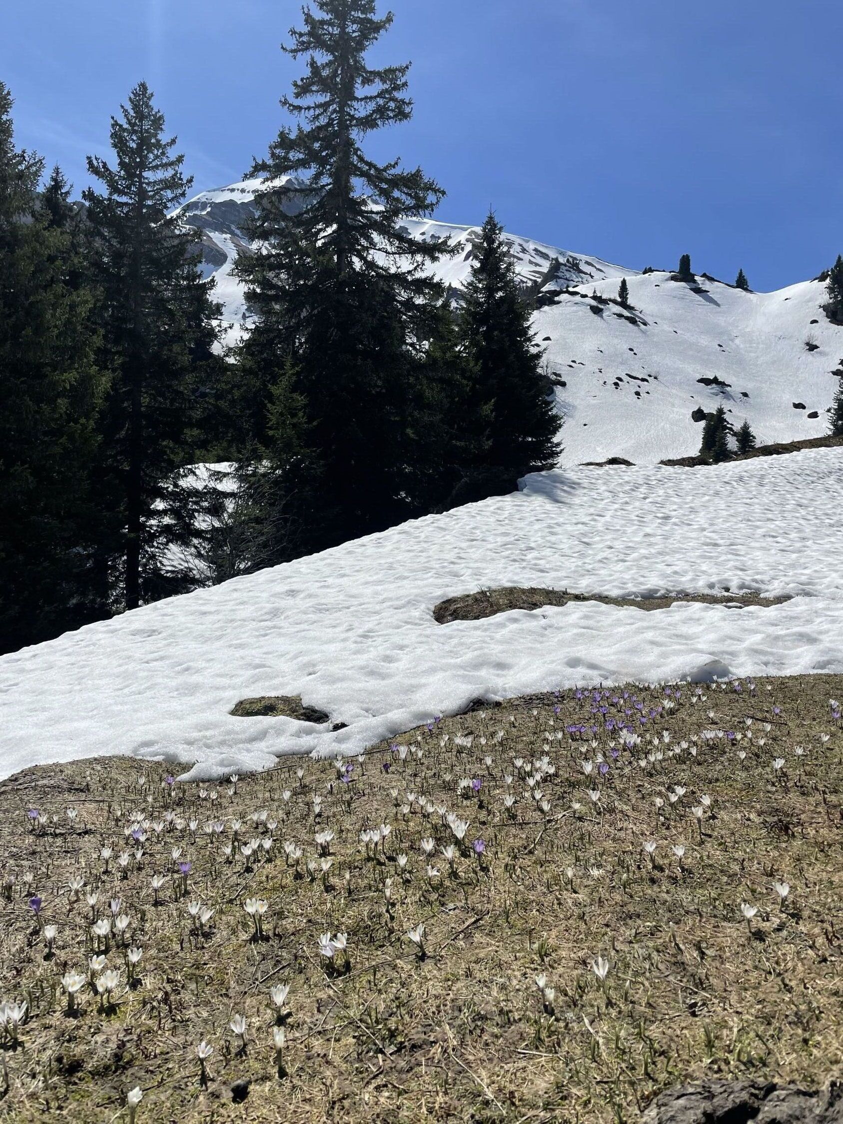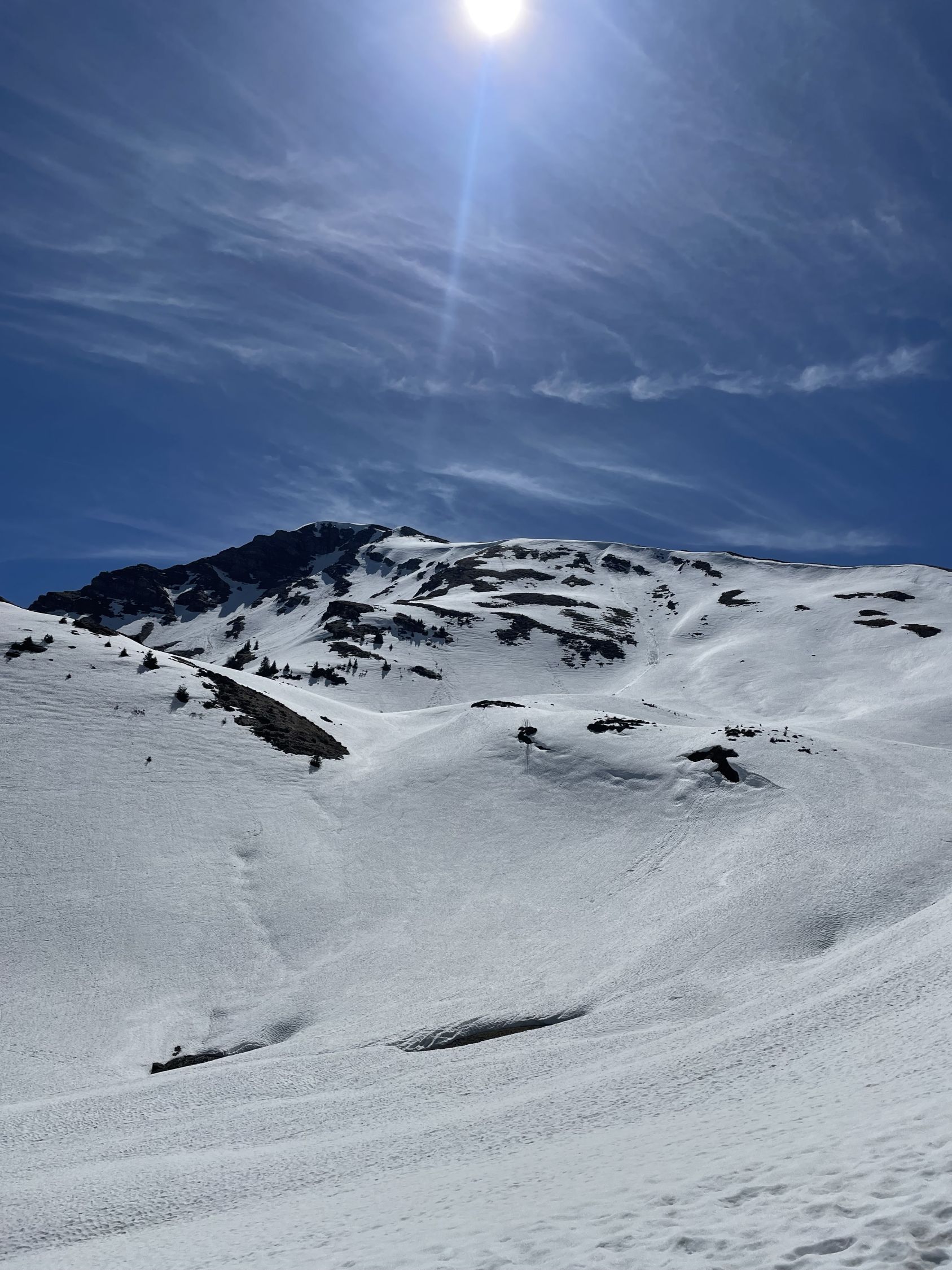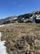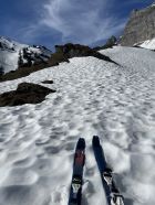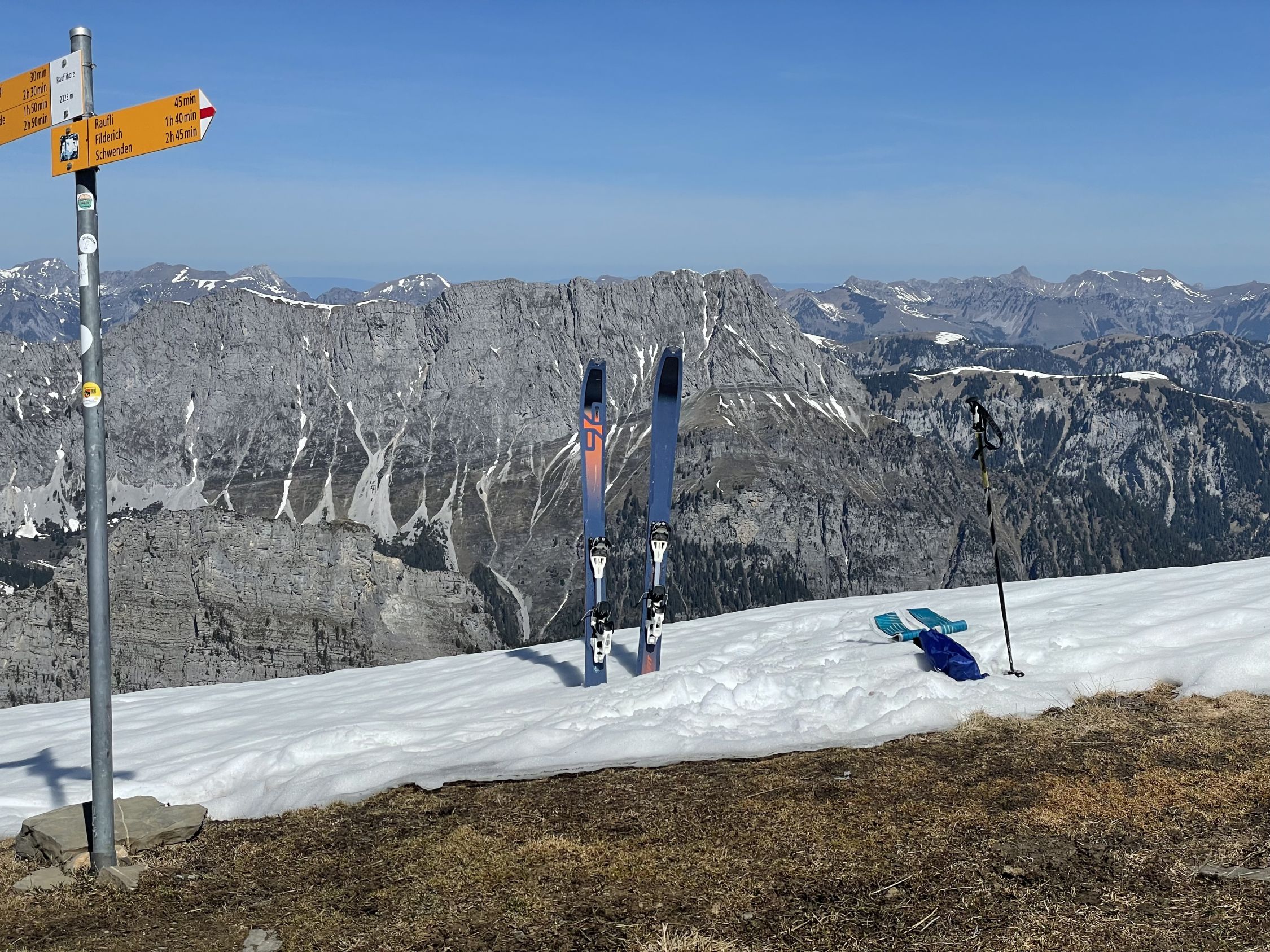 Zuerst mal vorweg: Es war wunderbar wie immer um diese Jahreszeit am Rauflihorn: Frühlingserwachen und weit und breit kein Mensch. Mit dem Auto bis 1400, dann 45 Minuten Skitragen bis zur Alphütte 1740. Von da an mit Fellen. Bisschen merkwürdig war dieses Jahr, dass es unten beim Brüggli 1500 mehr Schnee hatte als sonst, im Gipfelhang dafür deutlich weniger. Muss viel gewindet haben im Winter. Aufstieg aber gerade noch ohne Skiausziehen möglich, zuoberst bitz übers Gras. Schöne schöne Pause und die Abfahrt war ein wenig anders als erhofft: oben, wo es schönen Firn hatte, musste ich immer nach der richtigen Route spähen, um nicht ins Gras zu fahren, unterhalb der Furgg, wo es mehr als genug Schnee hatte, war der eher sumpfig und leicht klebend. Ich bin halt auch verwöhnt dieses Jahr!