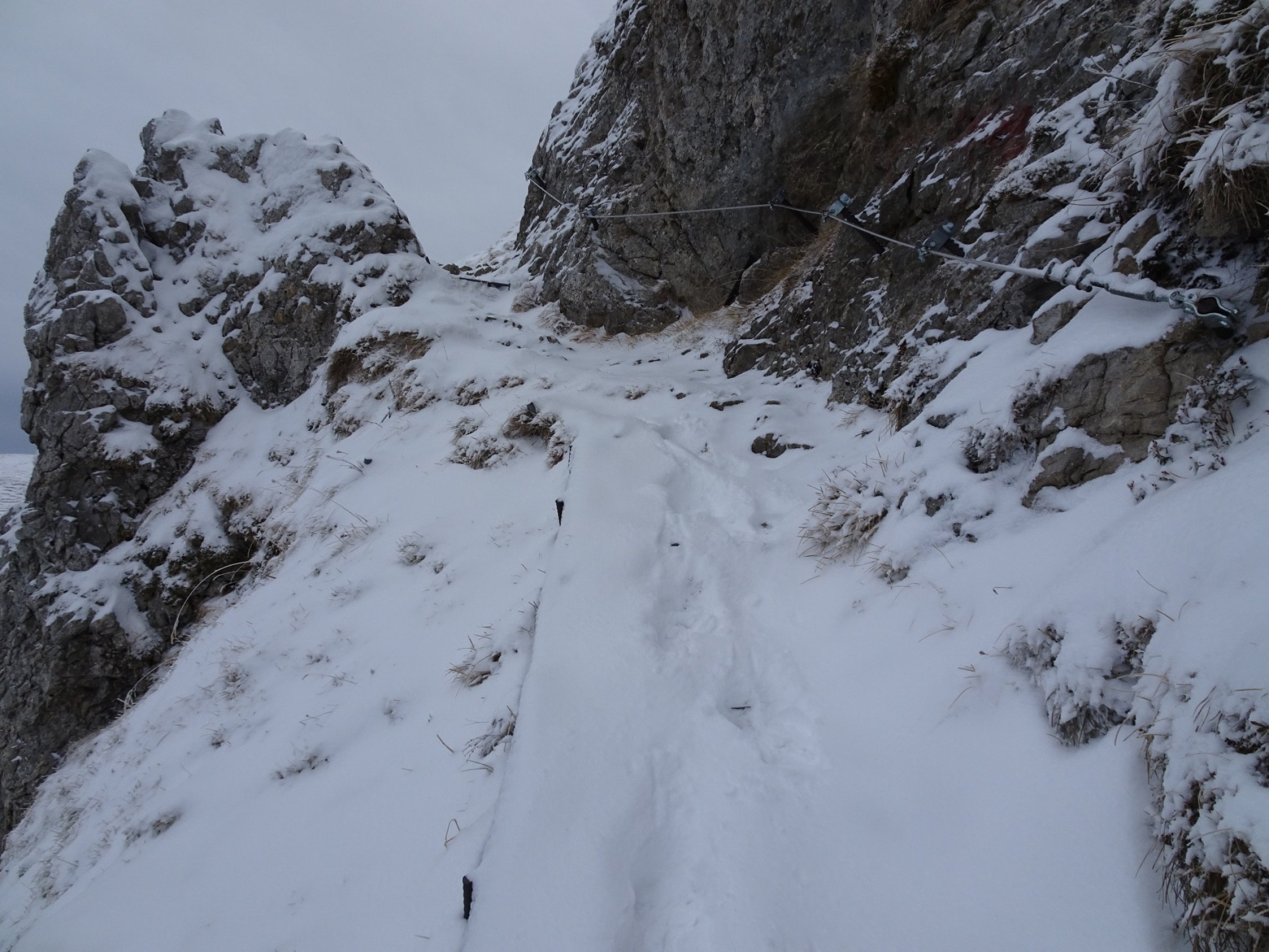 Eigentlich wäre der Aufstieg vom Kastensattel zum H.K. gesperrt wegen Steinschlag. Da aber heute nicht gesprengt wurde und somit keine Gefahr besteht bin ich trotzdem zum Gipfel. Wochentags würde das evtl. Ärger geben?!