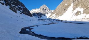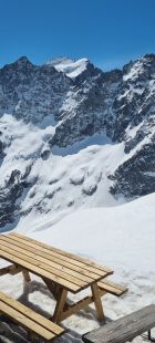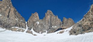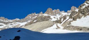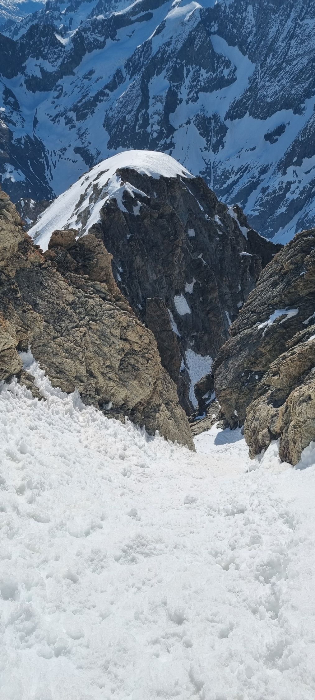 Wir haben den Gipfel im Rahmen einer 5tägigen Durchquerung gemacht, mit Start um 6.00 am P Pont d'Arsine in Richtung Refuge Adéle Planchard (5h). Vom P ca 30min an der Romanche tragen, dann wechselnd auf Ski oder zu Fuß auf hartem Sommerschnee. Im oberen Romanche Tal gute Schneelage. Der direkte Aufstieg zur Hütte durch eine Rinne ging gut und ist trotz grande beau und Südausrichtung erst am Nachmittag aufgesulzt.