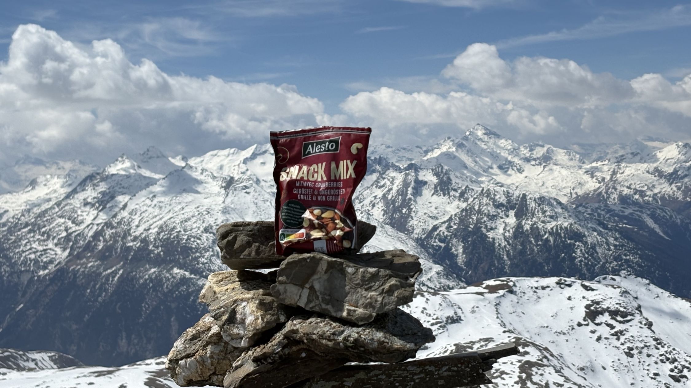 So wurde auch nichts aus der Oben-ohne-Gipfelrast ala Bergrider. Rasch ein paar Nüsse aus dem Sack, der mich seit dem Tremoggia begleitet und nun über 8000 HM hinter sich hat, in den Mund gesteckt, einen Schluck Zilisier Brunnenwasser und ab ging‘s.