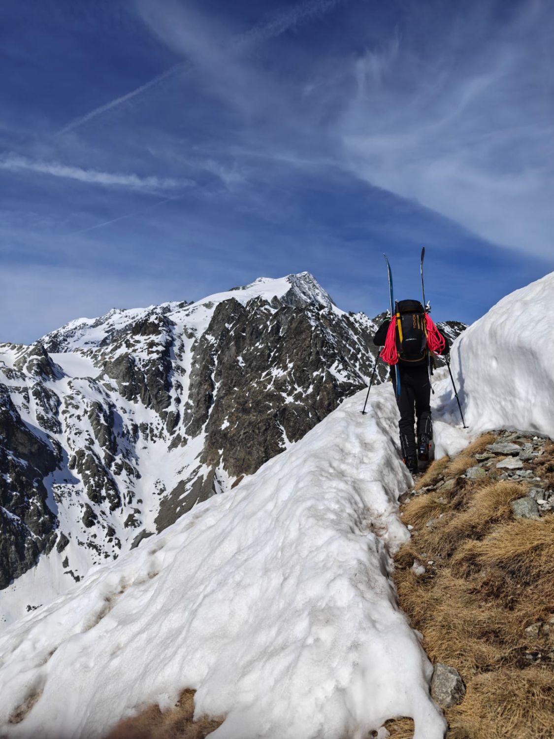 Von Magine aus muss man ca. 45min zu Fuss. Dann gehts bald gut mit Ski. Man kann noch auf der (im Aufstiegssinn) rechten Seite der Borgne bleiben, es gibt etliche Stellen wo man noch drüber kommt. Die steile Querung zu Plan Bertol ist aper und man kann den Bergweg benutzen. Danach gute Frühlingsverhältnisse bis zur Hütte, letzter Steilaufschwung erstaunlich gut zu gehen. Wir haben unsere Ski gleich auf die andere Seite gebracht, so dass wir das am Morgen nicht müssen, und waren froh drum (gmacht isch gmacht!)...