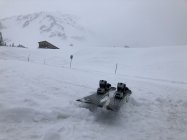 Sehr viel schwerer Neuschnee, ohne Unterlage. Sehr mässige Sichtverhältnisse. Abfahrerisch eher bescheidenes Vergnügen, da der Schnee wirklich tief und schwer war. Aber ein tolles Eröffnungstüürli, das neben Materialtests auch ein LVS-Training ermöglichte.