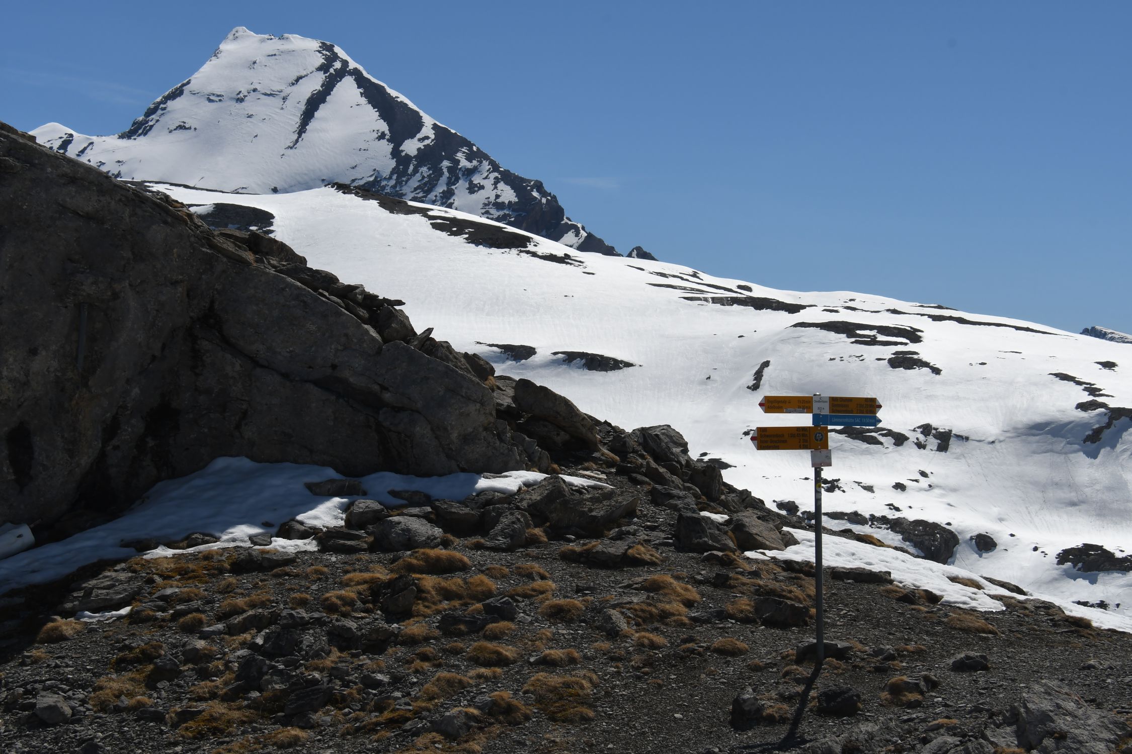 Erinnerungen kommen wieder hoch von meiner ersten Gebirgswanderung in 1975, von der Engstligenalp am Tierhörnli und Roter Totz vorbei zur Gemmi. Da war das Rinderhorn noch komplett mit einer Firnkuppe bedeckt.