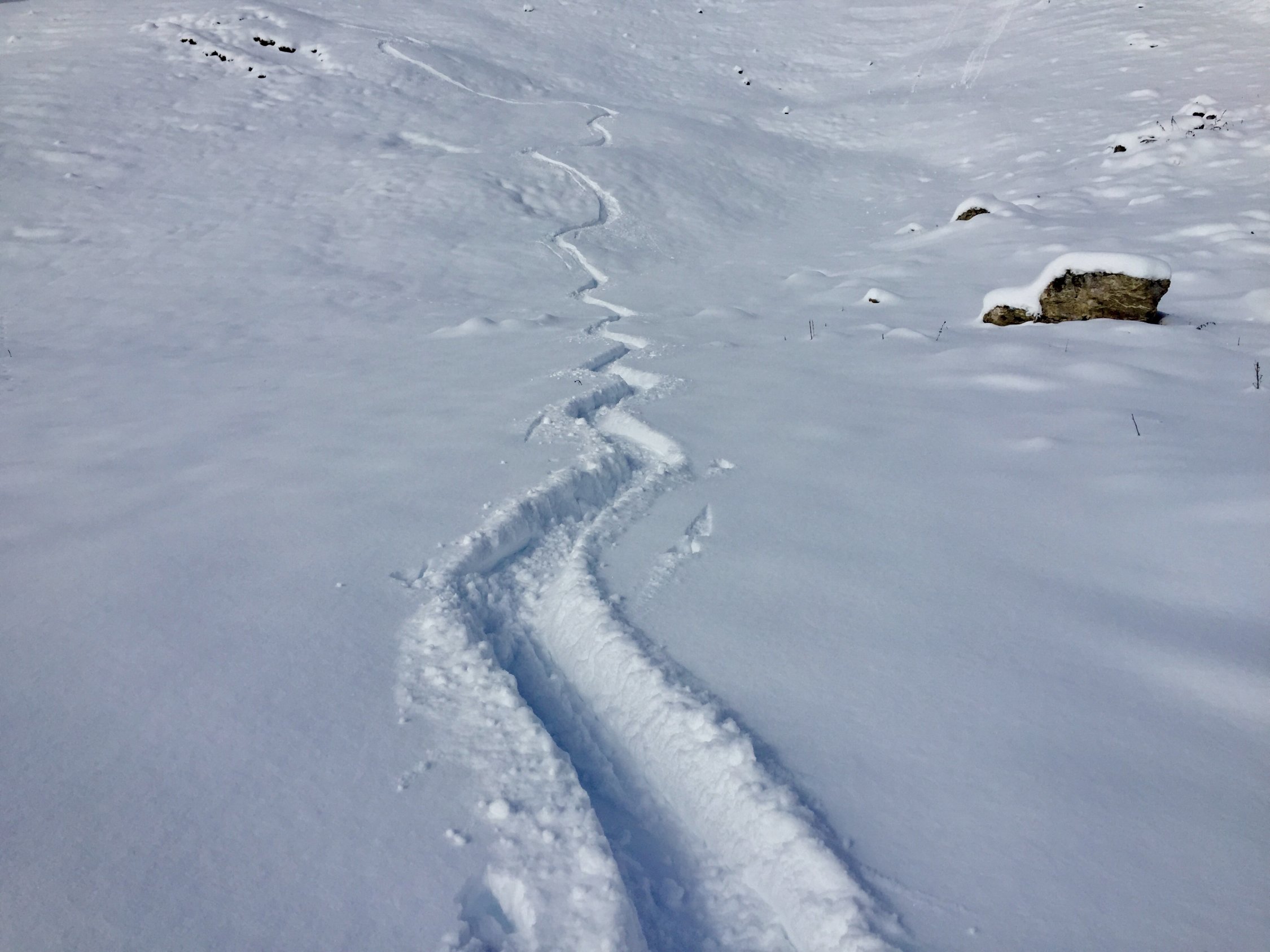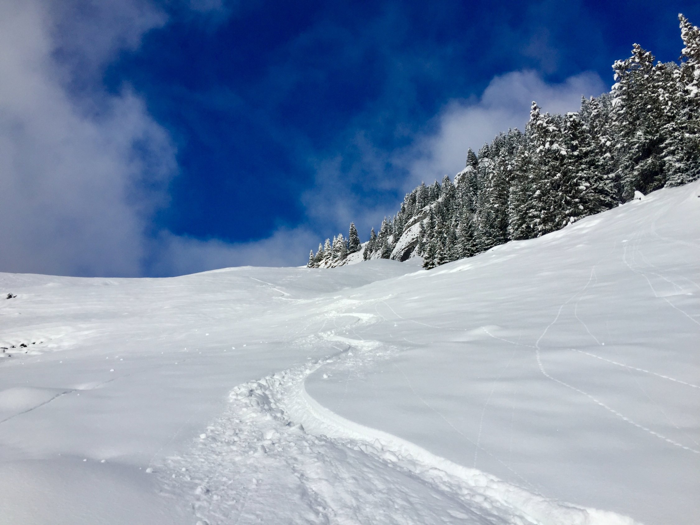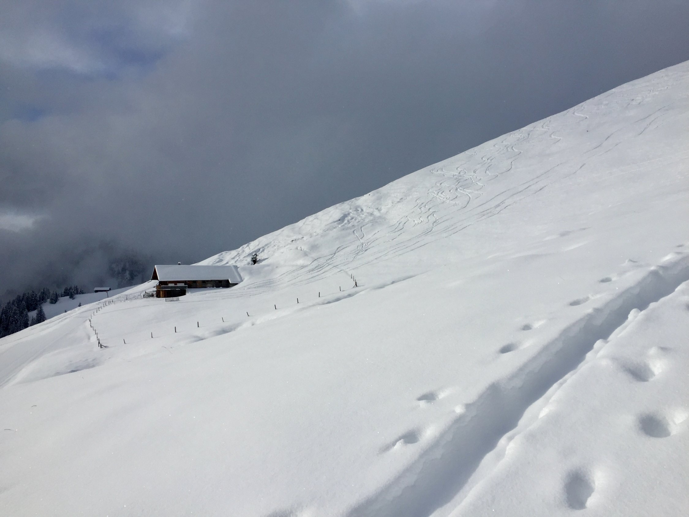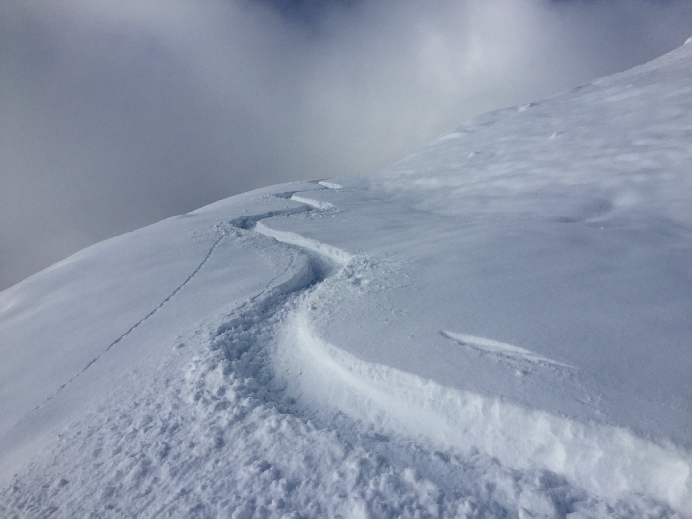 Mit dem Neuschnee gab es ca. 30 cm Pulver. Auch wenn keine gute Unterlage vorhanden war, hat sich der Schnee schon recht gut verdichtet. Es war erstaunlich gut zum fahren. Ausser im Gipfelbereich hatte ich keinen Steinkontakt. Es hat sich gelohnt.