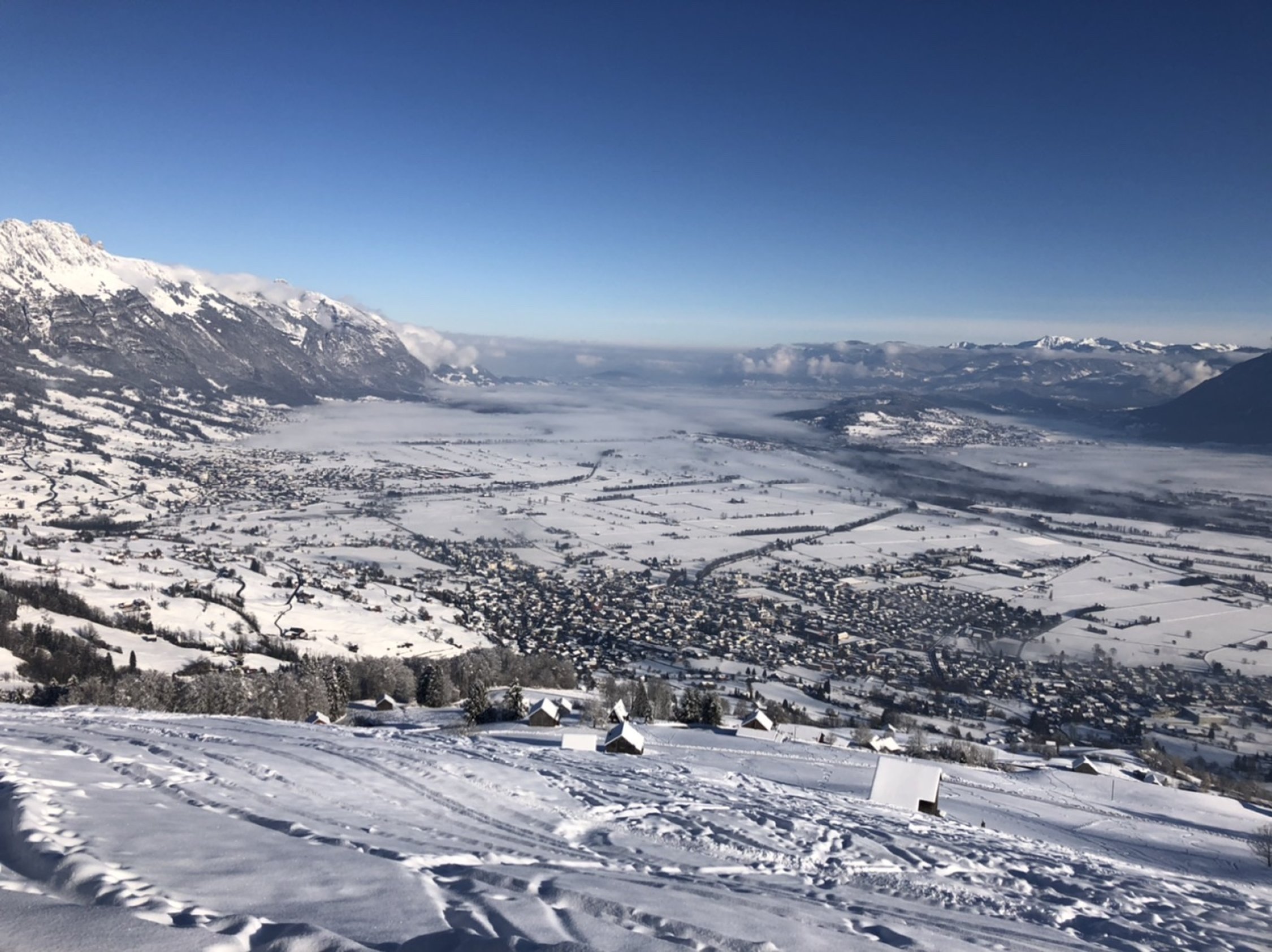 Wahnsinnsabfahrt wenn Schnee bis Grabs liegt.