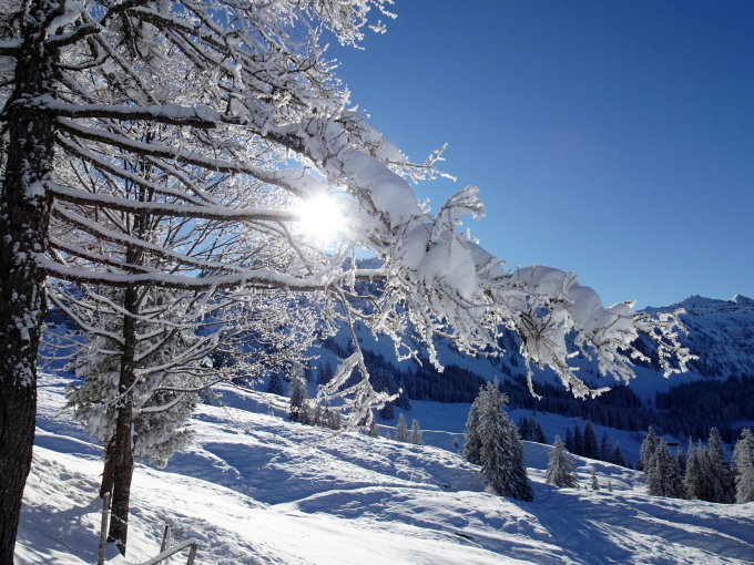 Habe es wieder riskiert: früh raus in der Hoffnung, der Stouffe sei höher als die Nebeldecke und so war es. Beim Vorder Schöriz kam die Sonne und blieb.