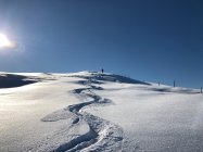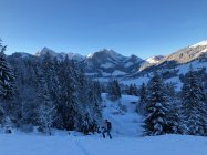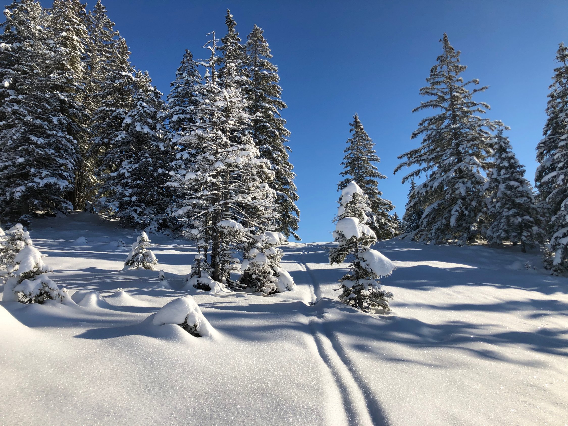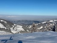 In den unteren Bereichen etwas schwerer Pulverschnee von ca. 20-25cm direkt auf Matten, oben schöner Pulver 30-40cm mit Unterlage. Herrliches Wetter in den Bergen, im Mittelland Nebelmeer.