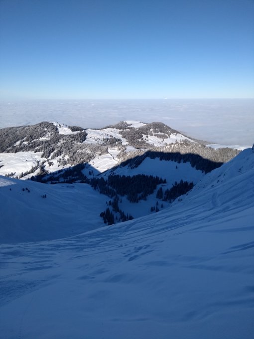 30-80 cm Pulver je nach Stelle, darunter kaum Unterlage. Beim Aufstieg harte Spurarbeit (herzlichen Dank an den/die VorgängerIn, der/die bis 1800 m gespurt hat!). Wegen den Verhältnissen habe ich auf die letzten (und die steilsten) 150 Hm verzichtet. Bei der Abfahrt Stein/Felskontakt war nicht zu vermeiden. Trotzdem schön. Ich bin dann noch auf die Bire hochgestiegen, trotz vielen Spuren die Abfahrt von dort Richtung Unt. Gantrischhütte war super und (fast) ohne Steinkontakt.
