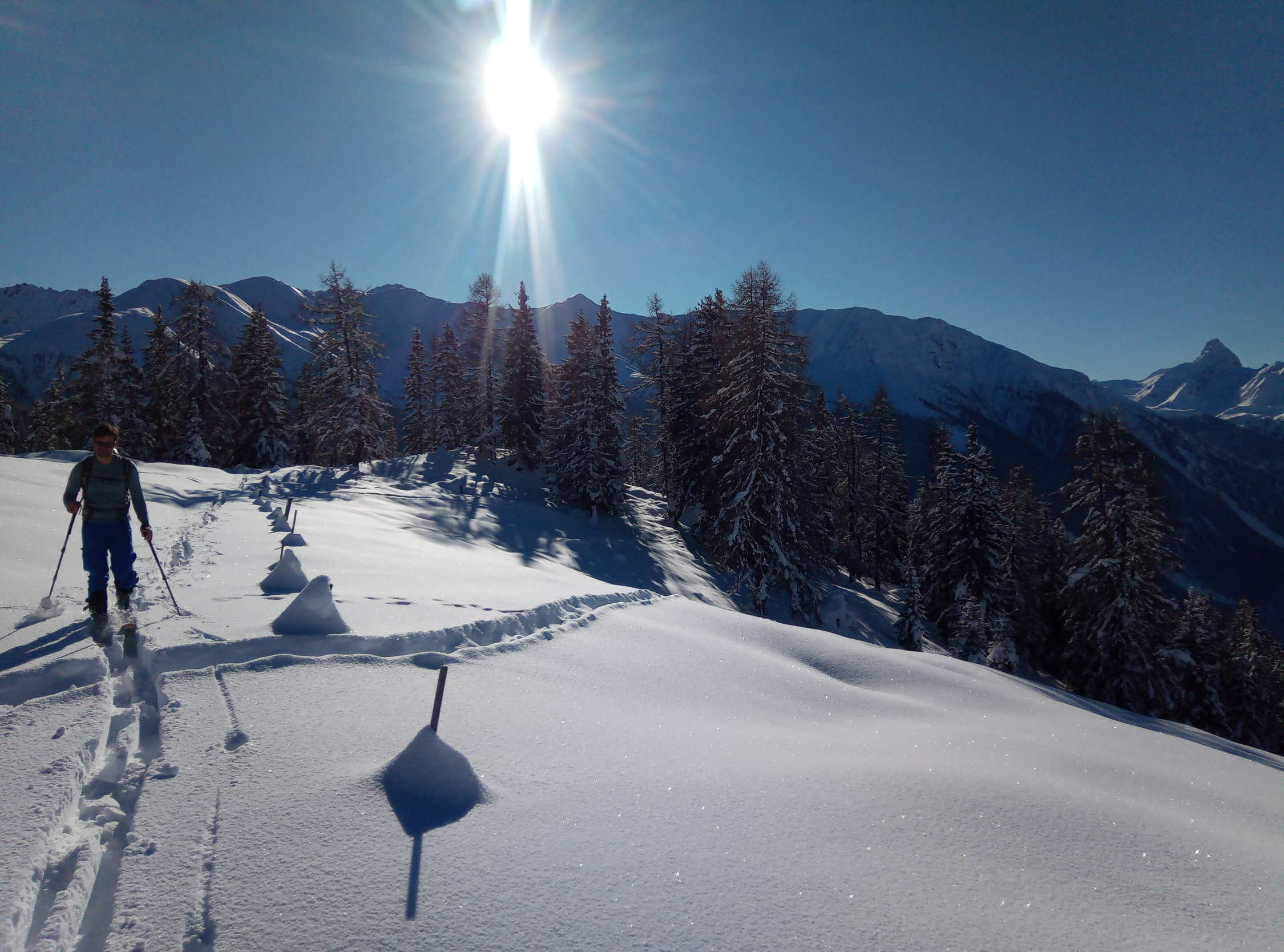 Nur eine andere Tourengruppe gesehen. Mussten/durften fast auf der ganzen Tour spuren.