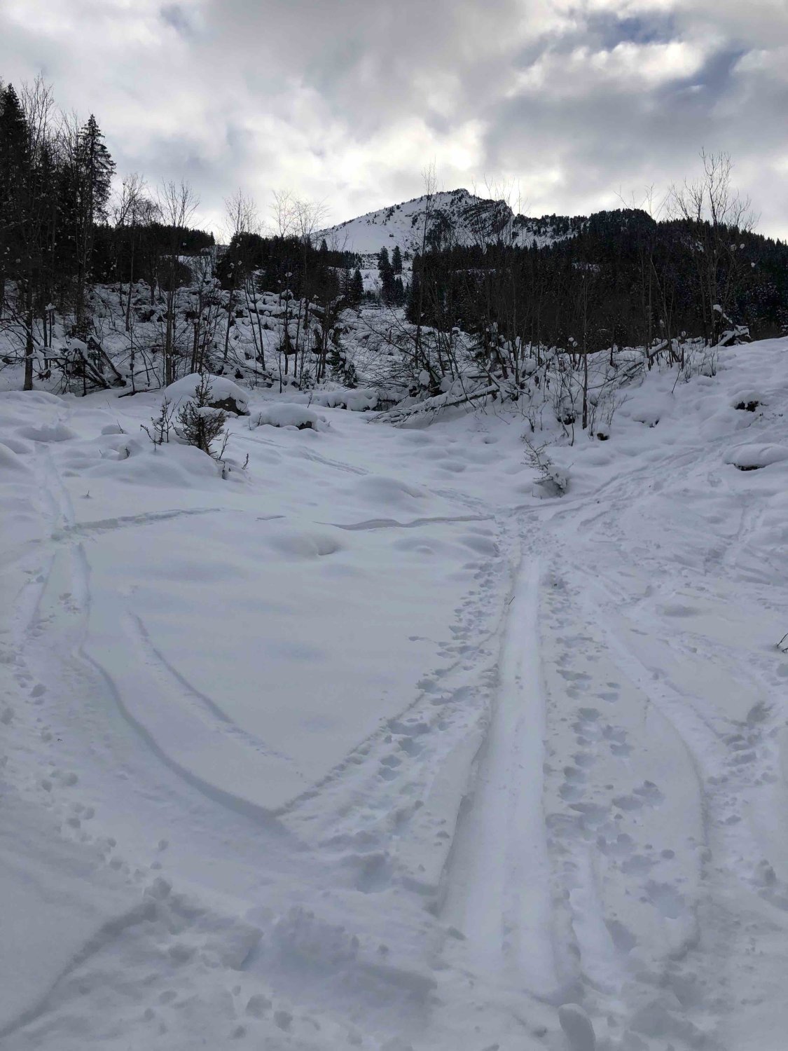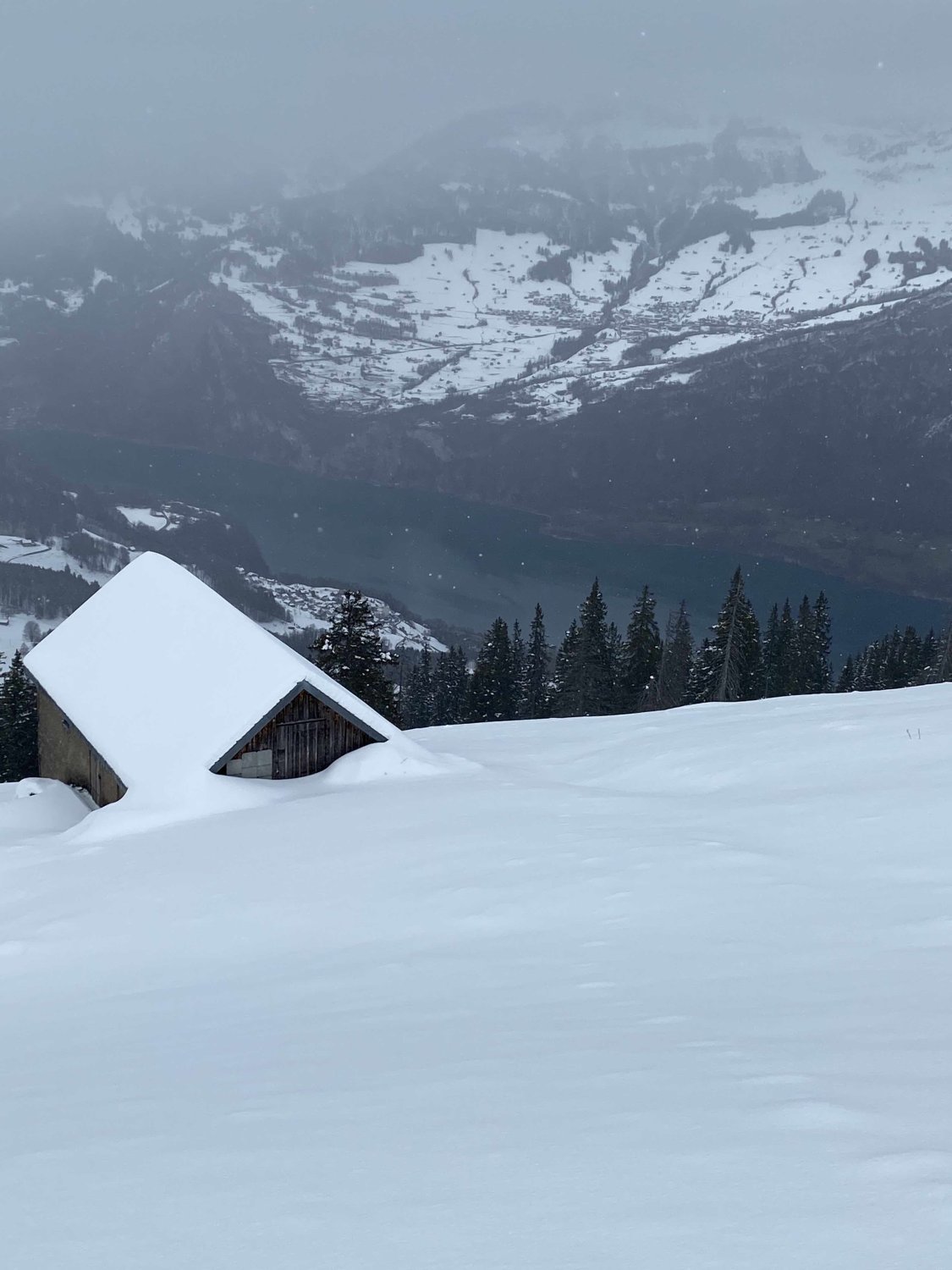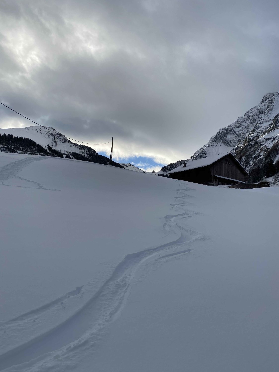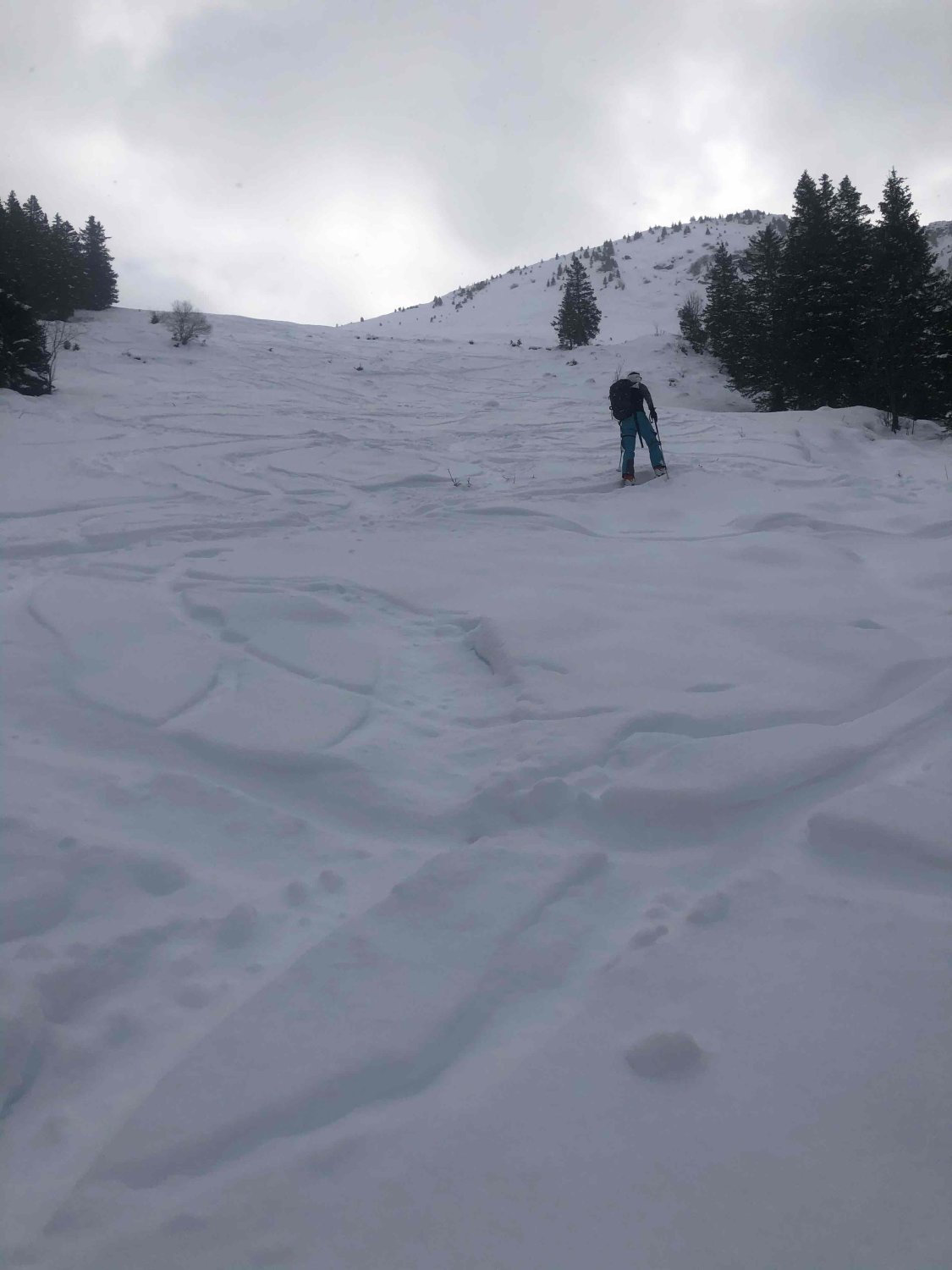 Sind um 9:30 Uhr auf 850m gestartet, dort hat es ca 30cm auf den Wiesen. Nach Hüttenberge im ersten Aufschwung ziemlicher Acker, es braucht halt noch Schnee (bei der Abfahrt haben wir zwischen 1250m und 1050m den Weg genommen, ratsam!). Die Schneise rauf gute Aufstiegsspur, aber uns war schon klar, dass wir beim Abfahren grosse Vorsicht walten lassen müssen. Hänge zwischen ca. 1550m und 1850m schön pulvrig und gut fahrbar bei ca. 50-60cm Schneehöhe. Hatten auch Glück mit dem Wetter, immer mal ein bisschen Sonne, so dass wir Unebenheiten bei der Abfahrt gut sehen konnten. Waren um 12 Uhr auf dem Gipfel. Bei der Abfahrt hat es etliche Male gekracht, die Tour hat sich aber definitiv gelohnt!
