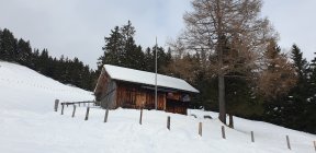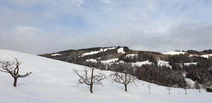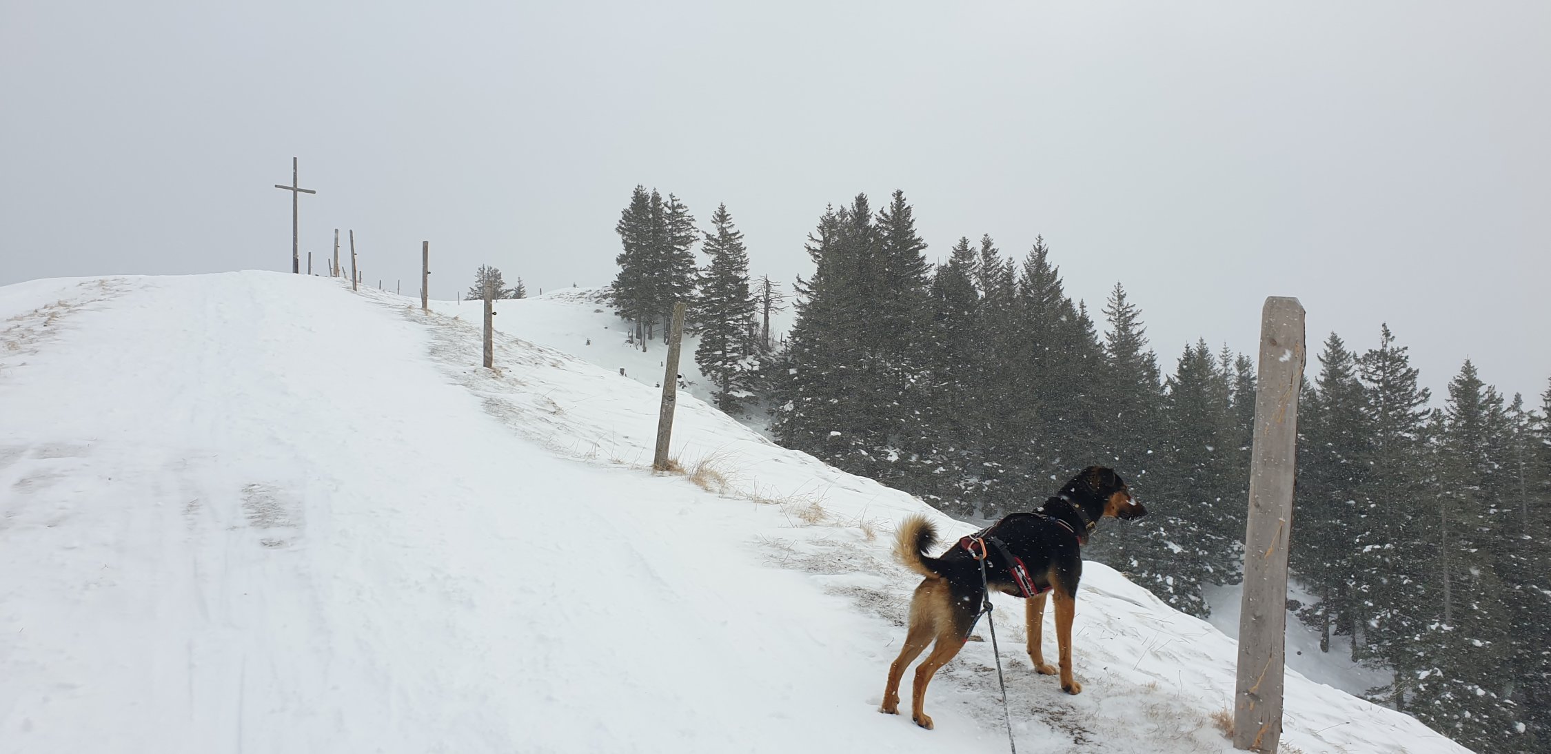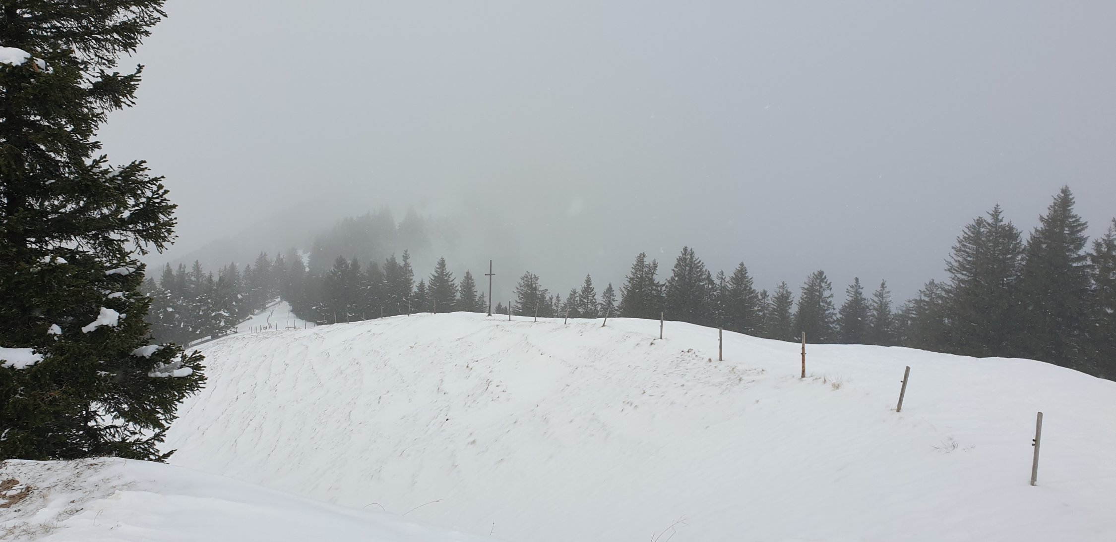 Start der Tour am 8.45 Uhr, das Wetter noch recht gut, mit - 2 Grad immer noch kühl, oben dann leichter Schneefall, bei der Abfahrt Pulverschnee, unten wurde es dann wärmer, was sich sofort auf den Schnee auswirkte, er war sehr nass schon.