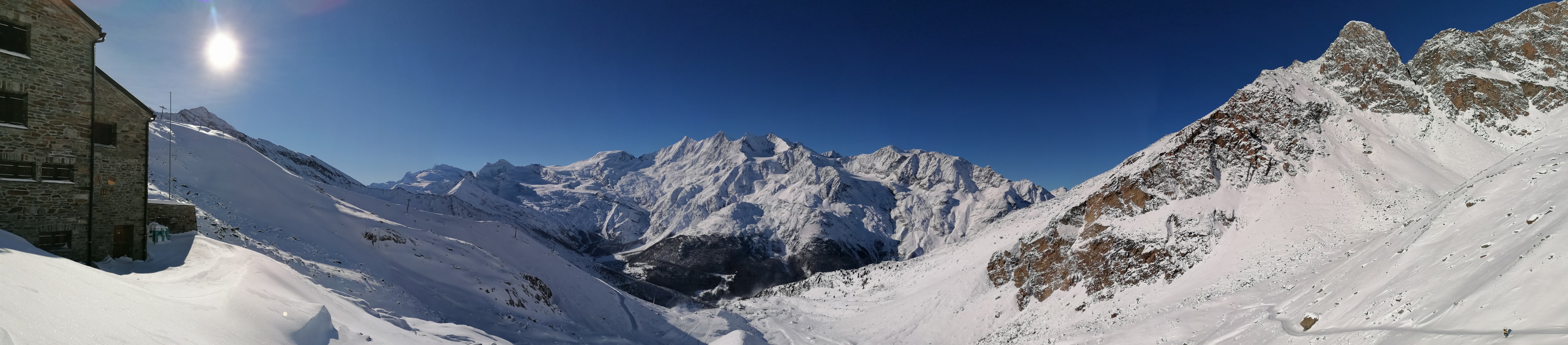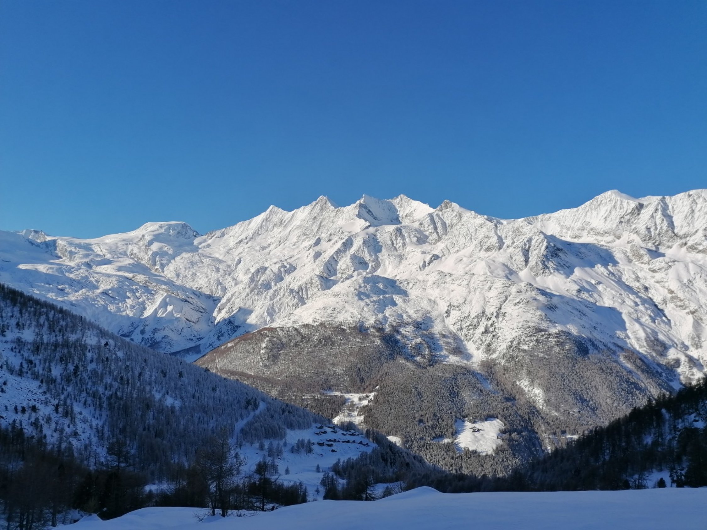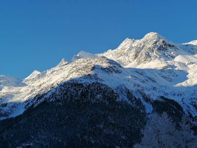Diese Skitour bietet einen grossartigen Blick auf das Saaser Dreigestirn: Fletsch- und Lagginhorn, sowie das Weissmies. Auf der gegenüber liegenden Talseite zeigt sich der prächtige Gipfelkranz der Mischabelkette.