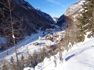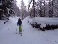 Aufstieg und Abfahrt: Wunderbarer 30cm bis 40cm Pulverschnee der bestens zum Abfahren war. Dieser war auf einer tragenden Unterlage. Die Waldstrasse nach Saas-Balen war gepistet, und schön zum Fahren.