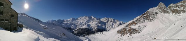 Im Süden ist das Monte Rosa Massiv zu sehen. Es grüssen: Nordend, Dufourspitze, Zumsteinspitze und die Signalkuppe.