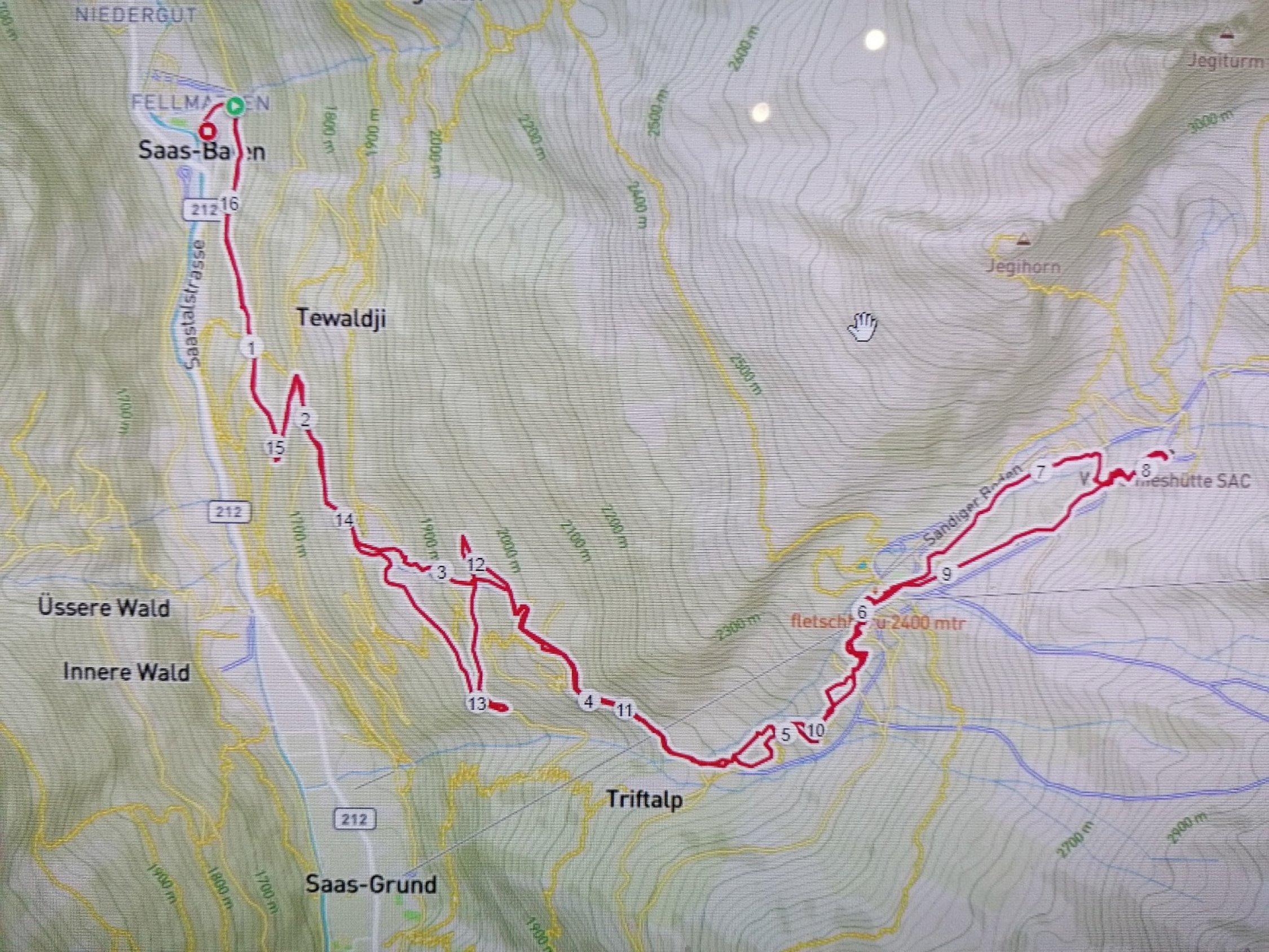 Saas-Balen-Kreuzboden Aufstieg: Saas-Balen - Rittmal - Tewaldji - P.1816m - Zer Engi - Tewald - Triftalp - Kreuzboden - P.2596m - Weissmieshütte.