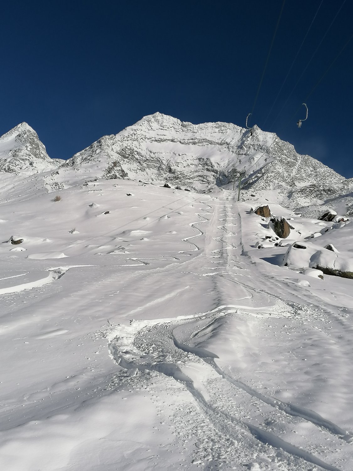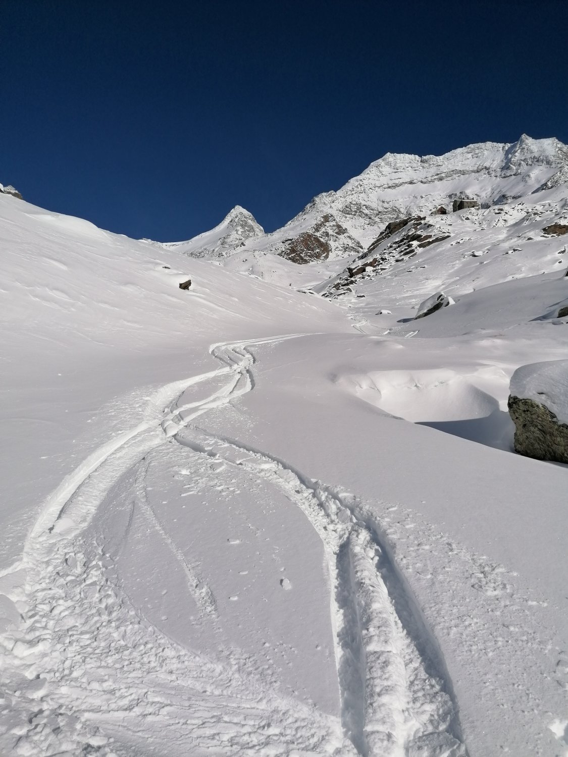 Die Abfahrt bot 30cm bis 40cm frischen und leichten Pulverschnee von der Weissmieshütte bis nach Saas-Balen. Es war ein Traum!