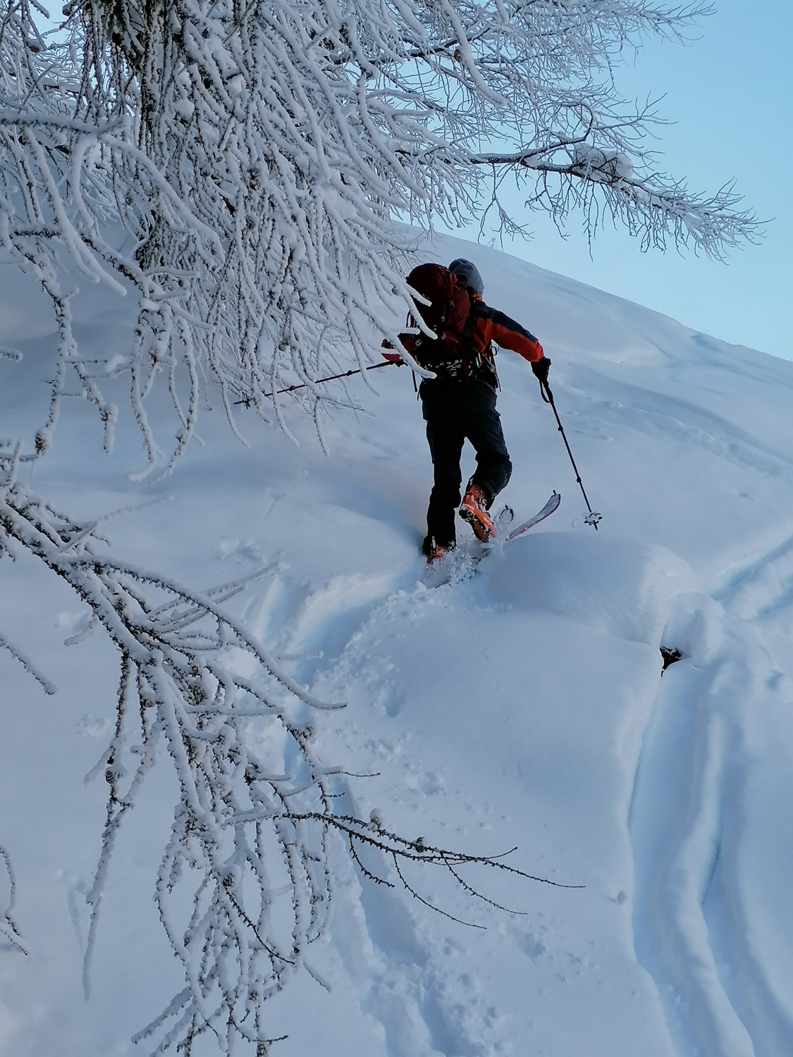 Wetter: Ausgezeichnet. Besser kanns nicht mehr sein. Windstill und bei -3 Grad bis -12 Grad angenehm zum Skitourengehen.