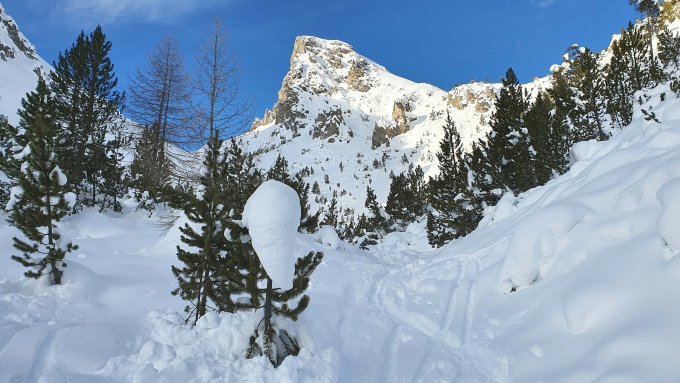 Nur zuoberst windgepresst, dann bis Tschierv Pulver, ein Traum. Wir waren alleine am Berg.