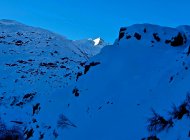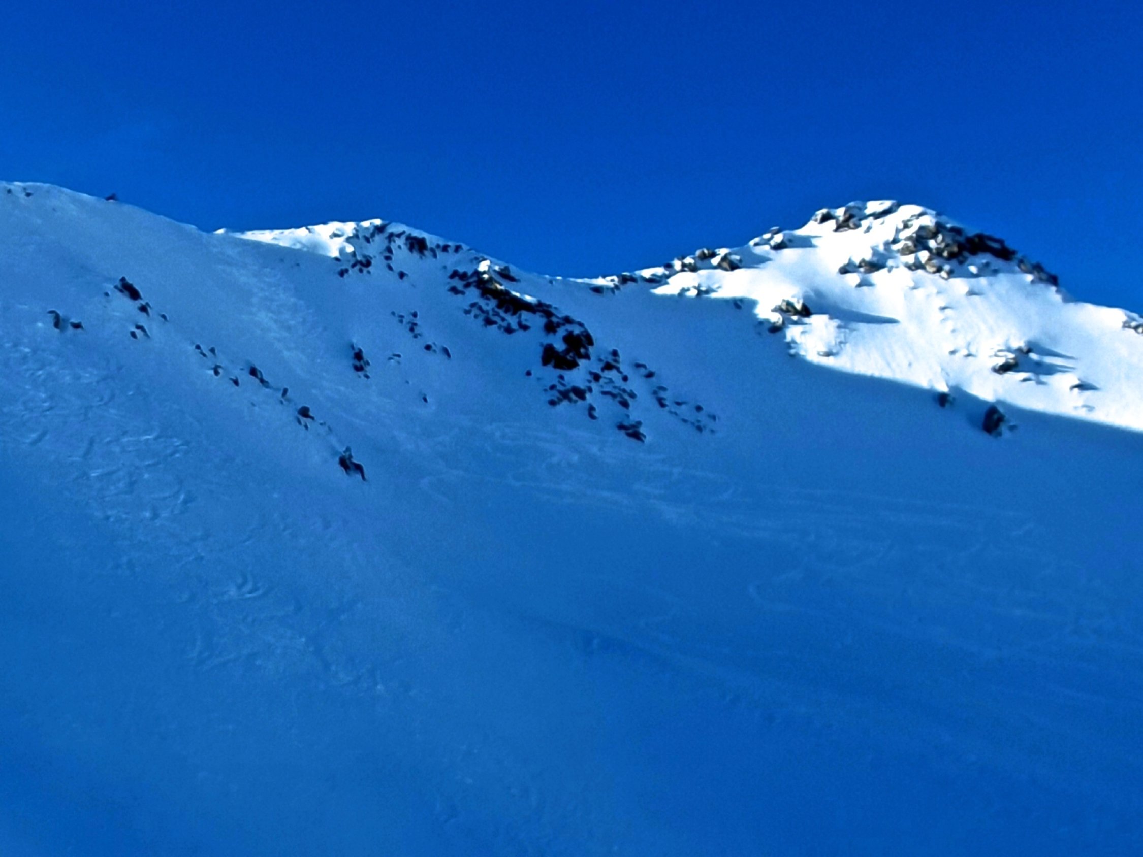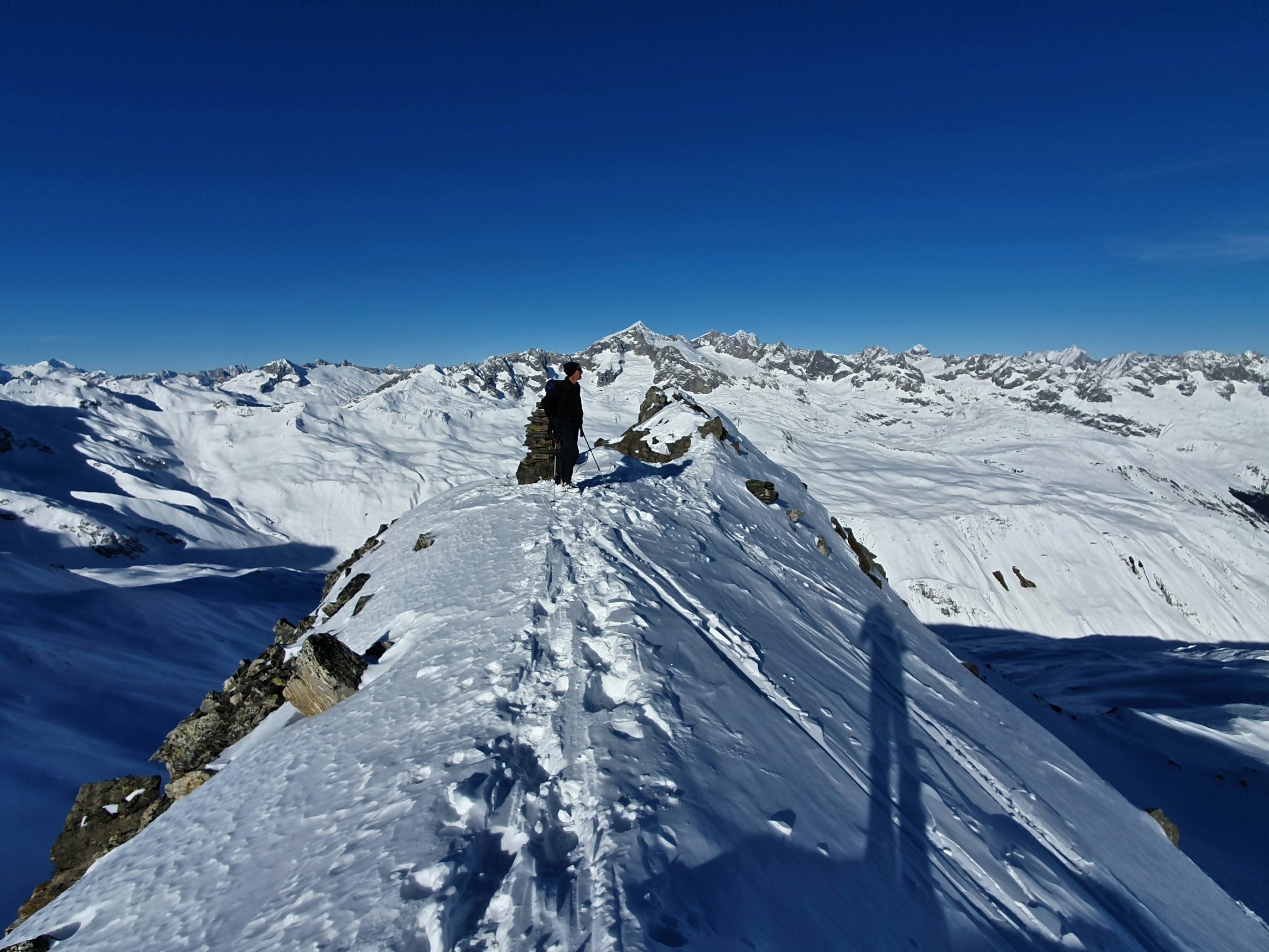 Start um 08.30 Uhr in Realp, bei wenigen Minusgraden. Es ist eine Ratracspur bis zur Abzweigung nach Schweig vorhanden. Gute und speditive Spur im Steilhang zum Stelliboden hoch. Der SE Grat auf den Gipfel kann bis etwa zur Mitte gut mit Ski bestiegen werden. Dann besser zu Fuss, aber problemlos.