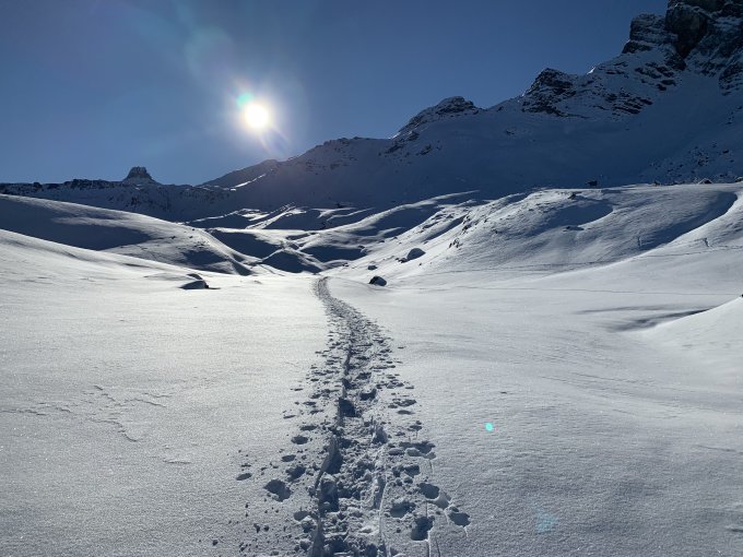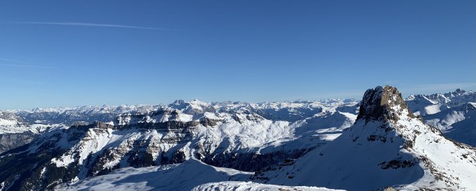 Wetter und Landschaft top, Schnee nur zwischen Gipfel und etwa dem Niveau der Spitzmeilenhütte Pulver, in Rinnen und direkt unterhalb des Gipfels auch ausreichend. Ansonsten eher wenig, Steinkontakt nicht ausgeschlossen. Unterhalb 2000m eher Harsch.