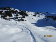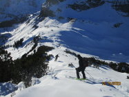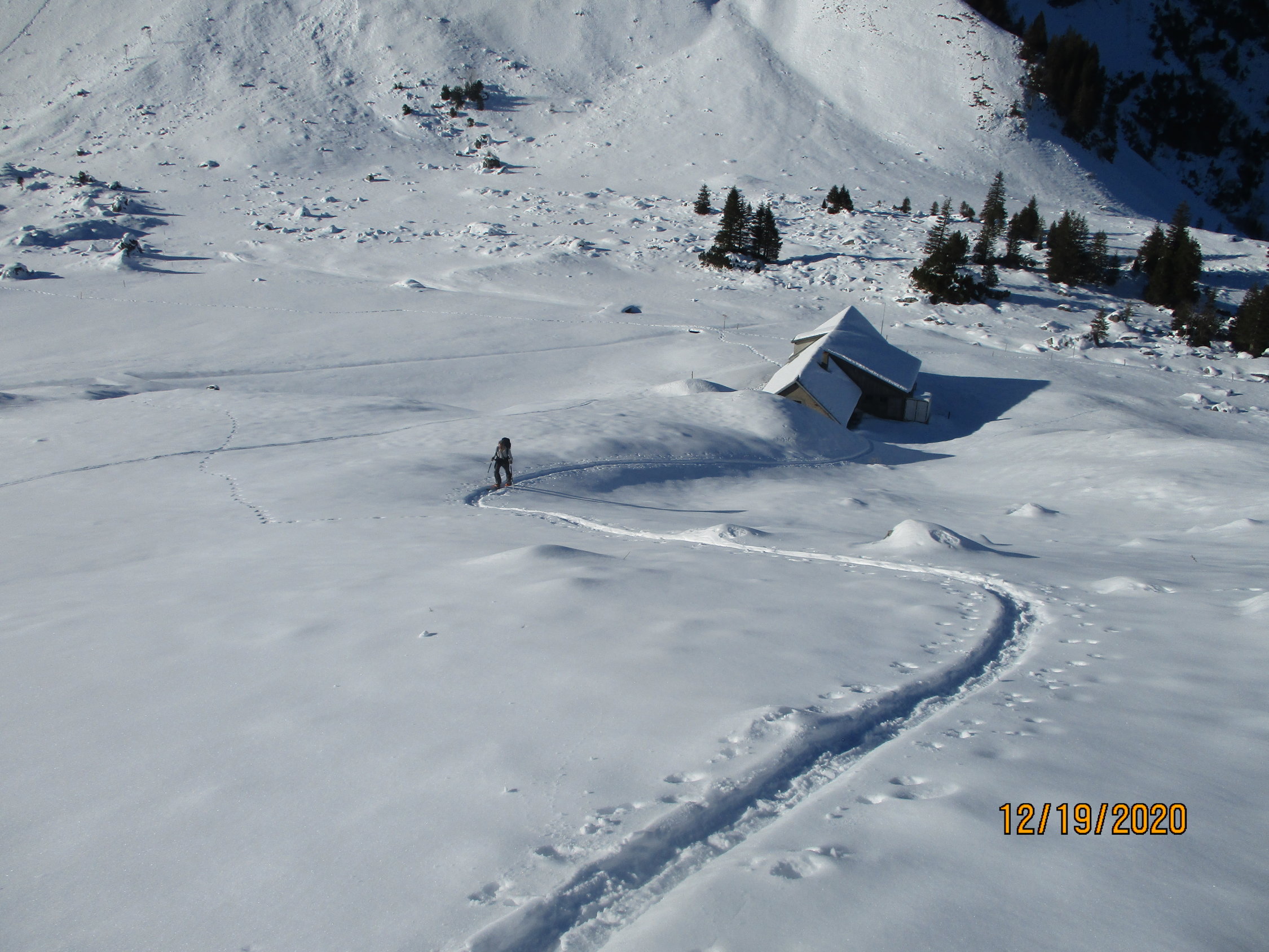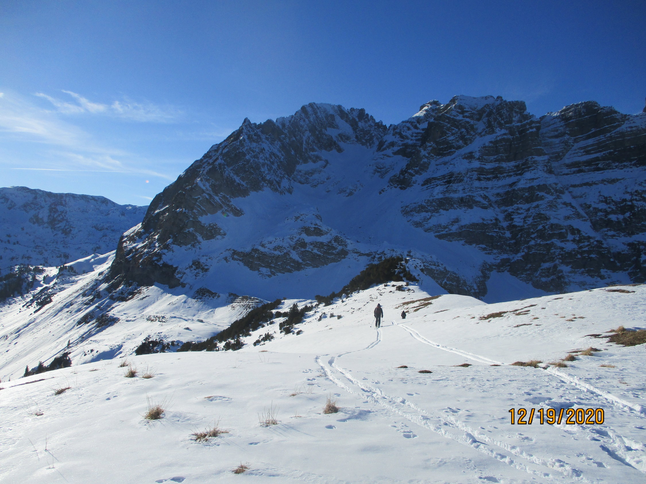 Achtung: ab dem 21.12. bis zum 31.03. ist das Gebiet rechtsverbindliche Wildruhezone. An- und Abstieg sind dann nur noch über den Sattel bei der Alpe Robmen möglich. Die Variante NW-Flanke ist dann verboten.