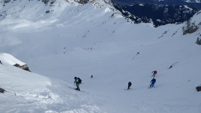 Oberhalb 2000m gut eingeschneit. Bei vorsichtiger und sanfter Fahrweise kein Steinkontakt. Unterhalb 2000m schon schwieriger. Mehr Steine und knapp überschneit..... aber dennoch gut fahrbar. Meist Pulverschnee. Ein paar Stellen auch Windharsch.