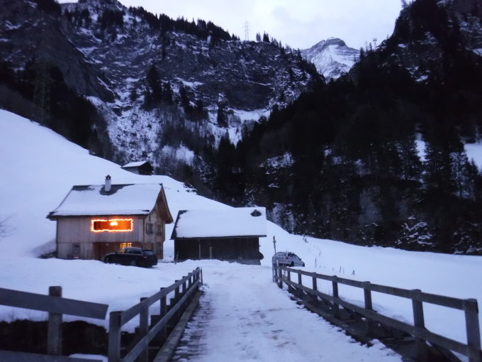 Der Fahrweg von Untertal bis Töniberg ist zwar schneebedeckt, aber gut befahrbar. Diverse Spuren vorhanden, auch 2 Schneeschuhspuren, allerdings viele durch die Abfahrenden wieder zerhackt. Bei der Passage durch den Gamperdunerwald fehlt an einigen Stellen schon der Schnee, was für Schneeschuhe nicht weiter tragisch ist. Ich lief die o.g. Varianten hinab, da auf den Sommerwegen 3 Spuren vorhanden waren. Ist jedoch nicht unbedingt eine Empfehlung wert.