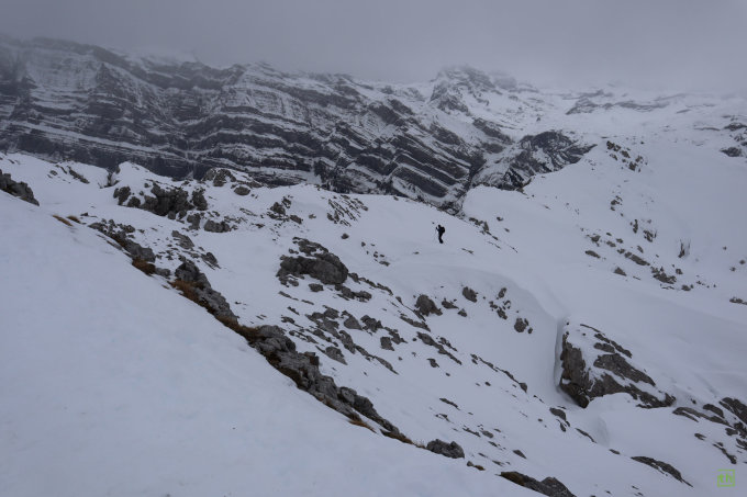 Im Aufstieg durch den Wald zwei Tragpassagen, je ca. 10-15. Minuten. Danach durchgehende Schneedecke bis zum Grat. Am Grat selbst abgeblasen und nur wenig Schnee. Wir sind das letzte Stück deshalb zu Fuss gegangen.