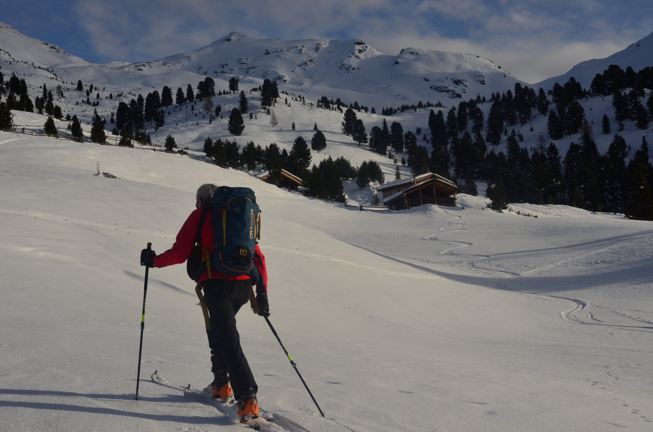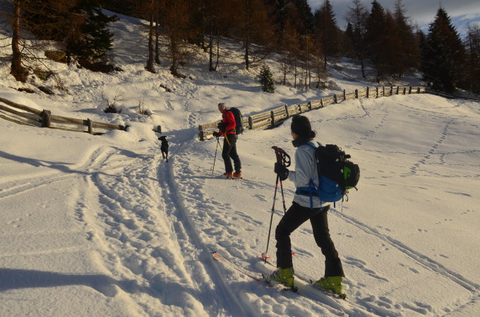 Von Durnholz Von Durnholz im Sarntal mit den Schiern hinauf zum Bachmann, weiter auf Weg 5 zur Angerer Wiese und weiter auf dem Forstweg nur leicht ansteigend bis zur Feldwiese. Nun aufwärts in mäßig steilen, muldenartigen Gelände, bis zur Einsattelung zwischen Pannhorn und Liffelspitze.Nun den kurzen mäßig steilen Hang bis zum Gipfel. Abfahrt wie Aufstieg.