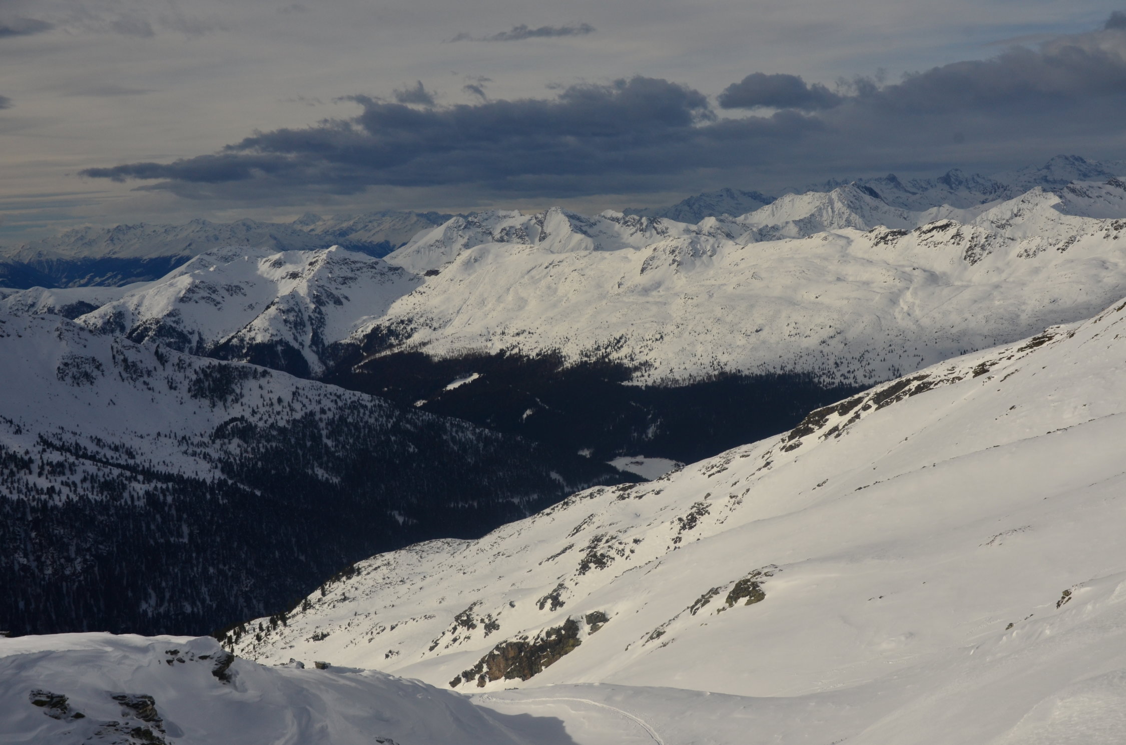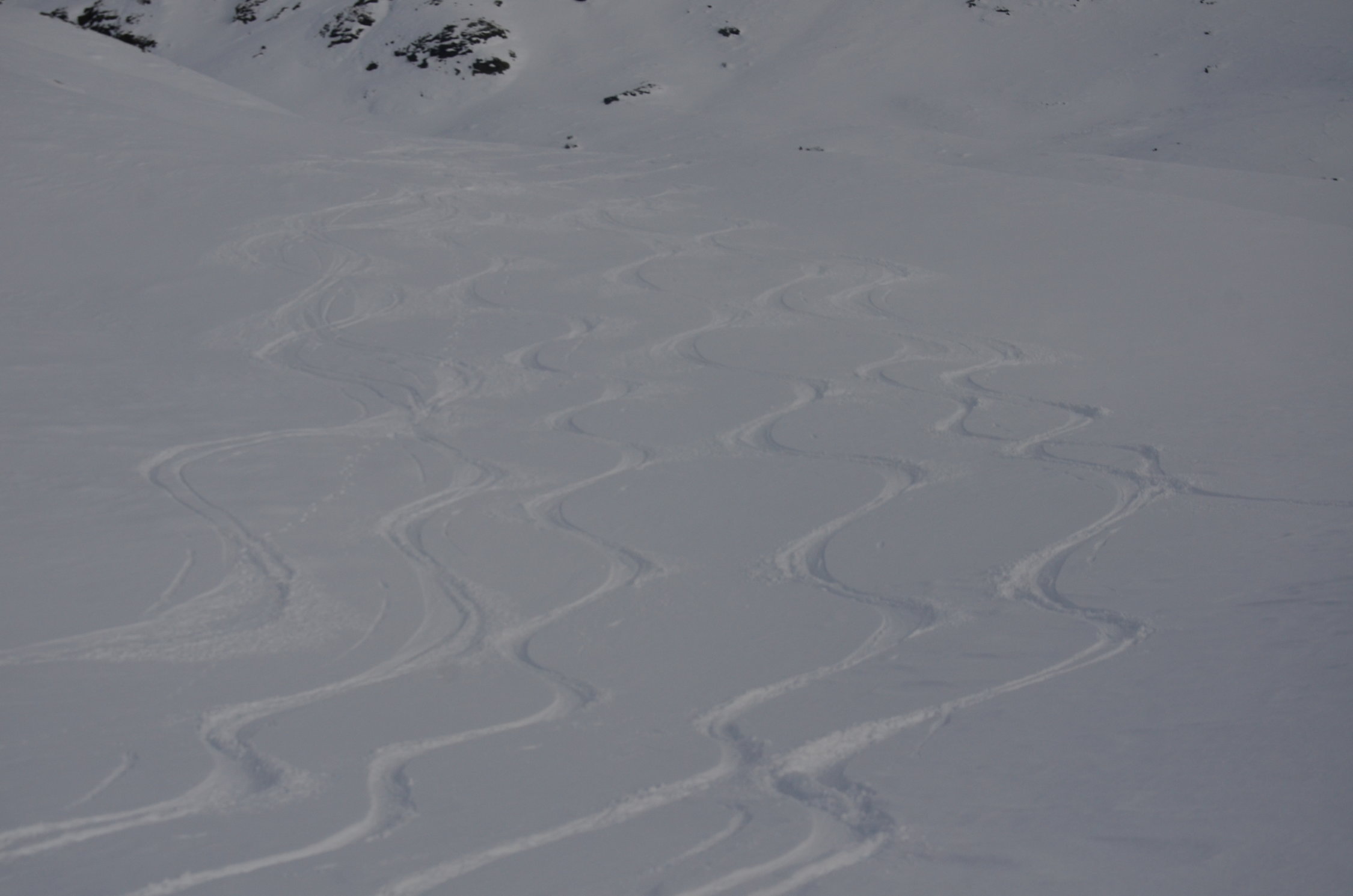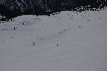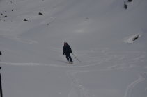 Sehr guter Pulverschnee, weil es in der Nacht einige cm Neuschnee gab. Weiter unten auf der Forststrasse war wieder der typische Schnee mit dem Harschdeckel vorhanden.