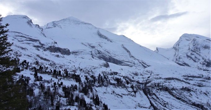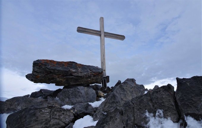 Um 9.15 auf Sunnbüel +5° Die ganze Schneedecke ist durchnässt bis auf den Boden. Gipfelflanke schön glänzende Schmelzkruste. Dank alter Spur war der Auf- und Abstieg mit den Schneeschuhen gut machbar. Abseits der Spur jedoch tiefes Einsinken. Mit der Kaltfront ab morgen Donnerstag massiv kälter.