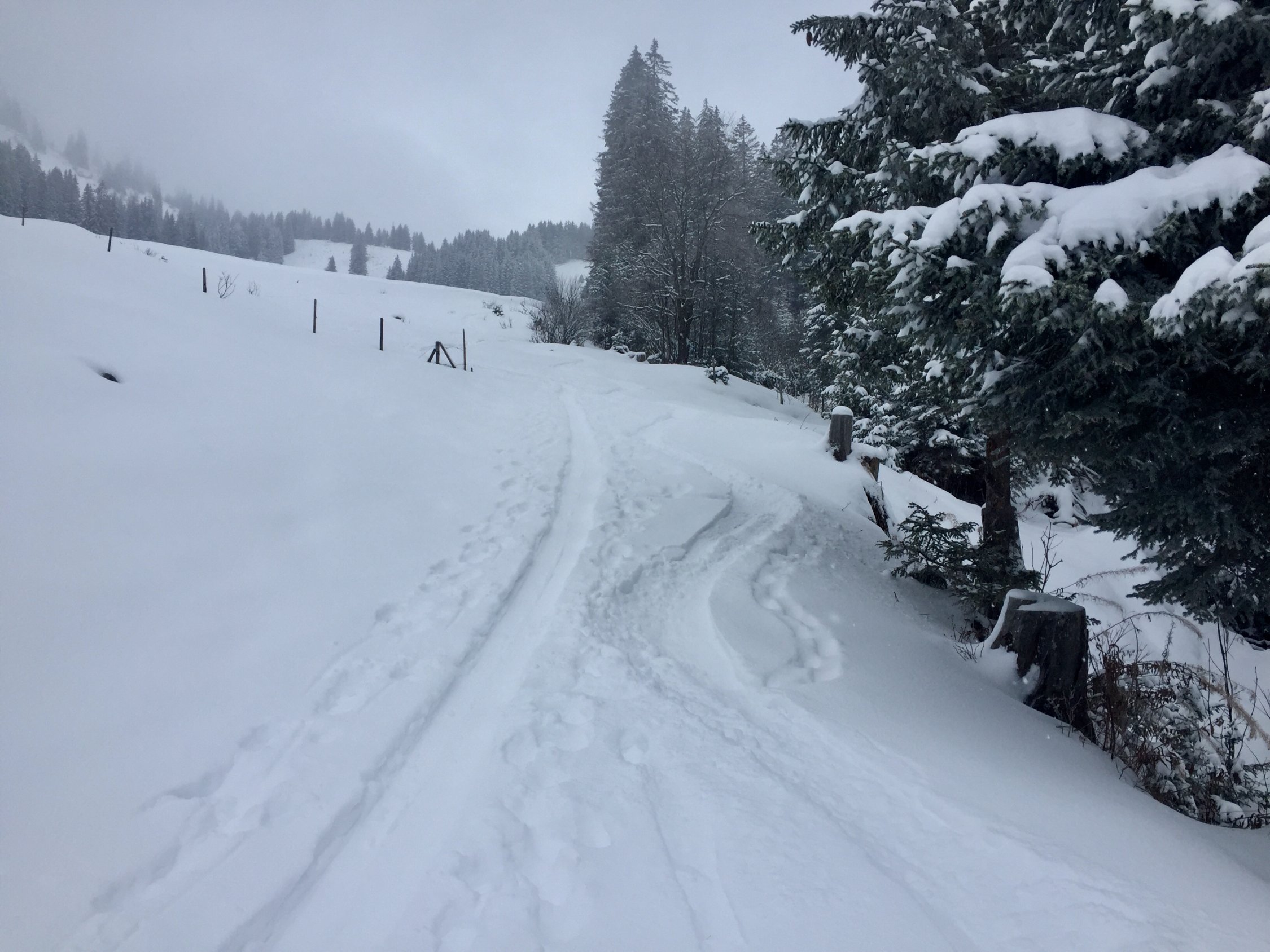 Um 10.30 Uhr gestartet. Ein kurzes Weihnachtstürli über den Mittag. Es hat 20 cm Neuschnee auf harter Grundlage. War erstaunlich gut zum Fahren.
