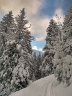Wunderbare Kulisse im Wald mit den verschneiten Bäumen.