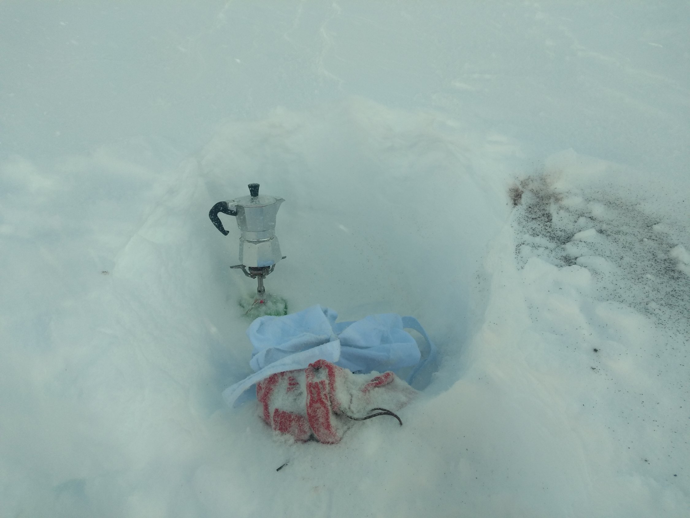 Auf dem Gipfel zu Beginn starker Luft. Konnte trotzdem Kaffee machen = )