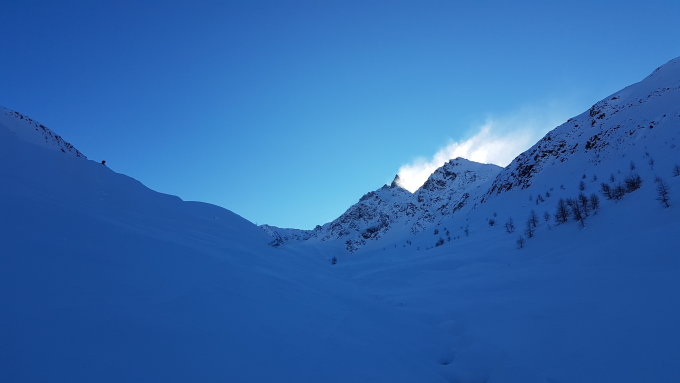 Abfahrt vor allem im oberen Teil etwas verblasen, aber meist schöne Pulververhältnisse. Unterhalb Tegia Muragl eher harschtige Verhältnisse