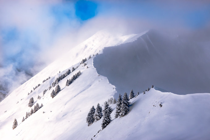 Oben beste Bedingungen, unten auf dem Fahrweg teilweise etwas wenig, vor allem fehlt hier die Unterlage. Die freien Hänge oberhalb der Baumgrenze waren heute allerdings ein Träumchen!