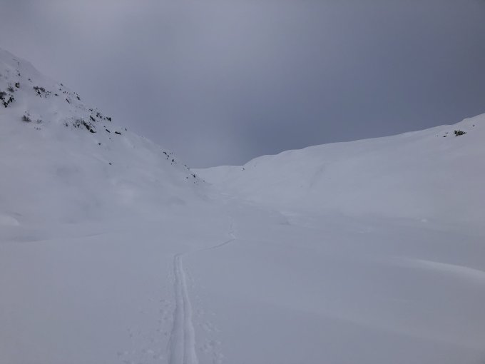 Mit dem Schneefall von vorgestern war für eine dicke Pulverdecke gesorgt. Da wir unter den ersten in Richtung RTH via Stelliboden waren, haben wir auch teilweise gespurt.
