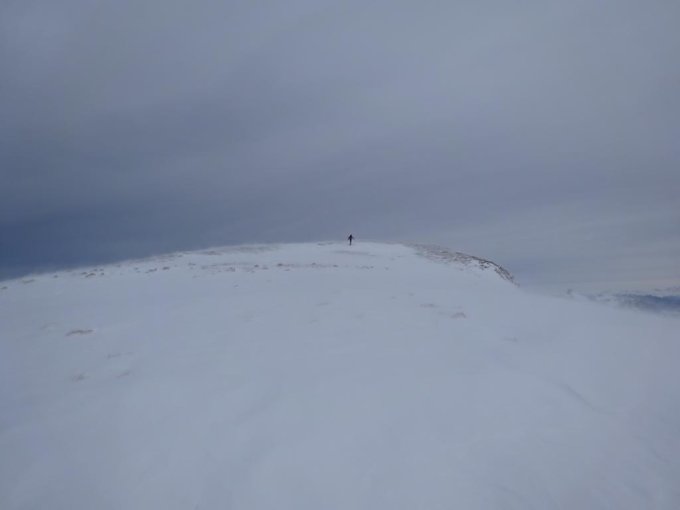 Der aufkommende Föhnsturm verlangte mental einiges ab. Am Anfang kalt (-7 Grad), aber windstill. Je weiter wir aufgestiegen sind, desto windiger wurde es, dafür auch wärmer. Der Föhn wirkte. Am Chüearnisch hinter der Hütte kurze Znünipause - hier fegte der Wind bereits ganze Schneefahnen durch. In der Steilstufe gab es zwischendurch etwas ruhigere Ecken. Auf dem Gipfel dann musste man zusehnen, dass Felle, Rucksack, Ski etc. da blieben. Runter mussten wir trotz Gefälle erst mal schieben wegen dem Gegenwind.