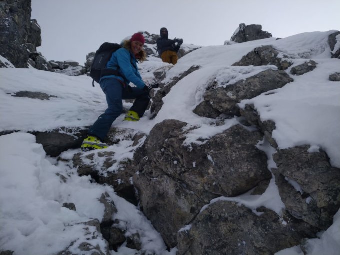 Es liegt teilweise Schnee im Felsen aber es ist nichts vereist und es sind auch recht gute Trittspuren.
