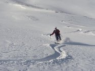 Der Neuschnee von gestern war top für heute. Pulverschnee auf bereits gefestigter Oberfläche. Im Gipfelbereich mehr verwehte Stellen. Osthänge waren