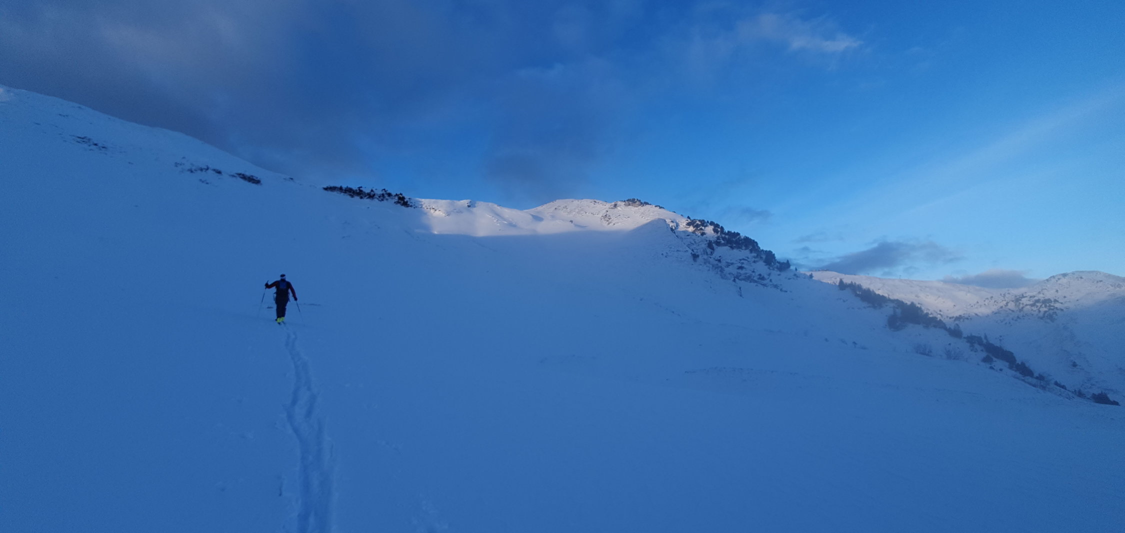 Spontan für diese Tour entschieden. Obschon anscheinend für viele "sehr bekannt" war es für mich heute Première. Schöne Halbtages Tour mit schöner Abfahrt. Heute Lawinentechnisch gemäss Bulletin. Heikelste Stelle bei Traversierung Huusmätteli konnte verantwortet werden, da sich die Unterlage schon gut gesetzt hat. Trotzdem ist dort bei den Übergängen zu "wenig Schnee" Vorsicht geboten. In der Abfahrt praktisch gleich wie Aufstieg traversiert.