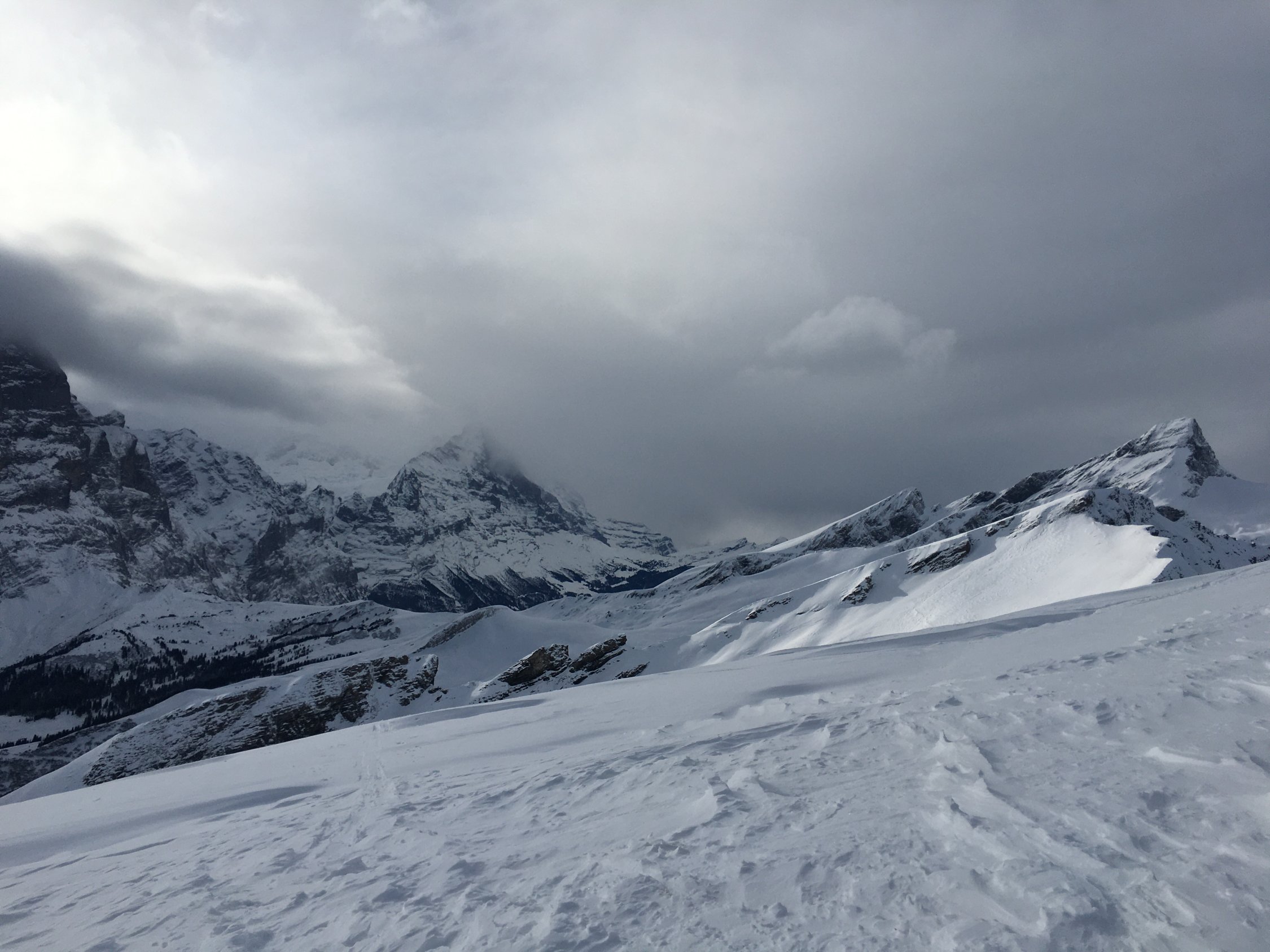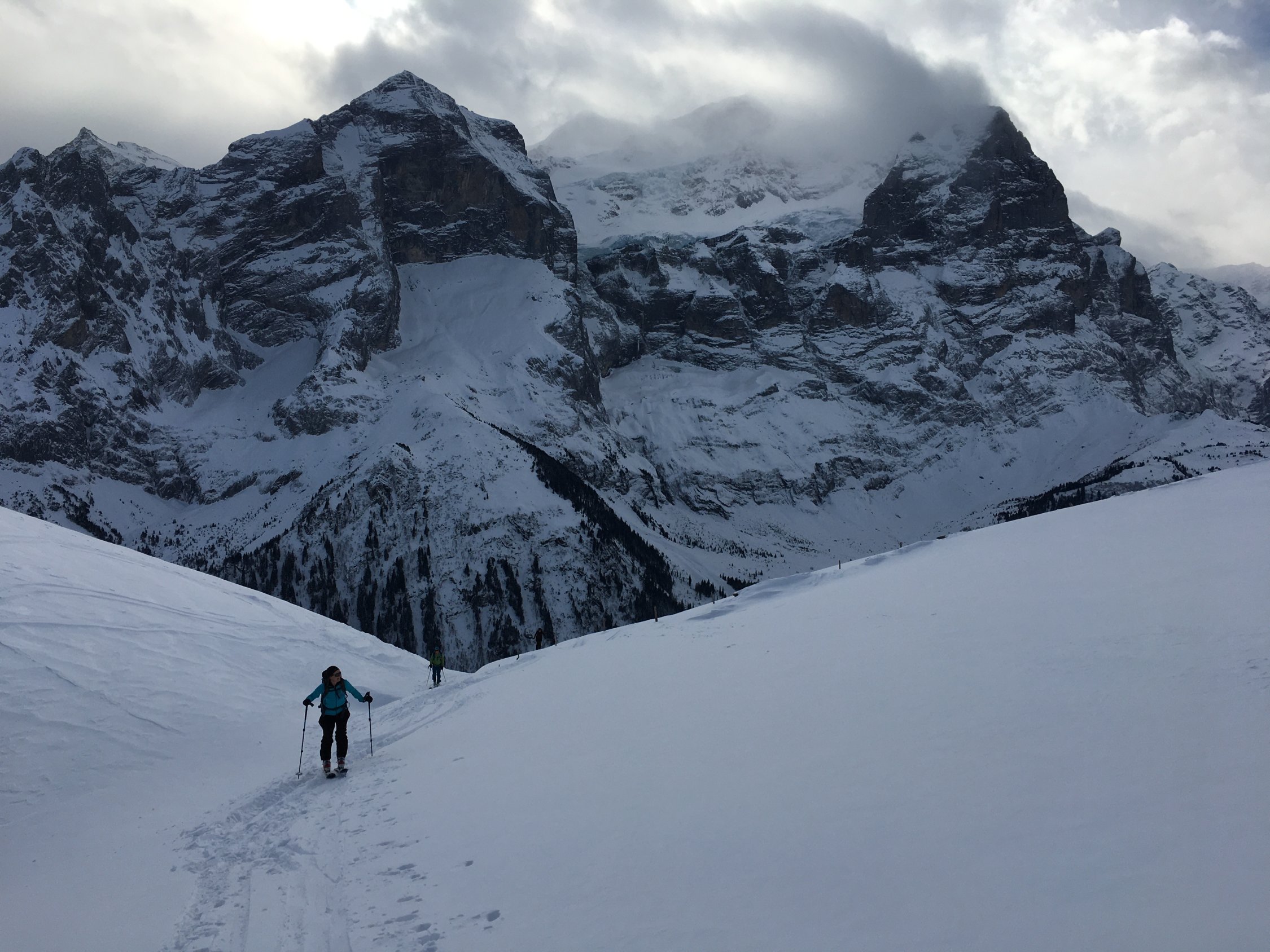 Obere Hälfte windgepresster Pulver, teilweise auch hart. Unten schöner Pulverschnee, mit etwas Fantasie reichte es für eine eigene Spur.