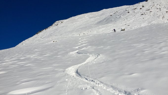 Bei Minus 7 Grad um 7.30 Uhr auf dem Grimmialp Parkplatz gestartet. War fast alleine unterwegs. Es gab sogar noch Sonnenschein. Traumhaft schöner Pulverschnee (30-40 cm) bis zum Gipfelhang. Dort hat der Wind viel Schnee wegtransportiert. Trotzdem findet man noch genügend schöne Abfahrtstellen um genüssliche Schwünge mit 10-15cm Pulverschnee zu geniessen. War dankbar, dass ich einige Firstlines machen konnte, bevor die grosse Karawane kam. Es hat sich total gelohnt.