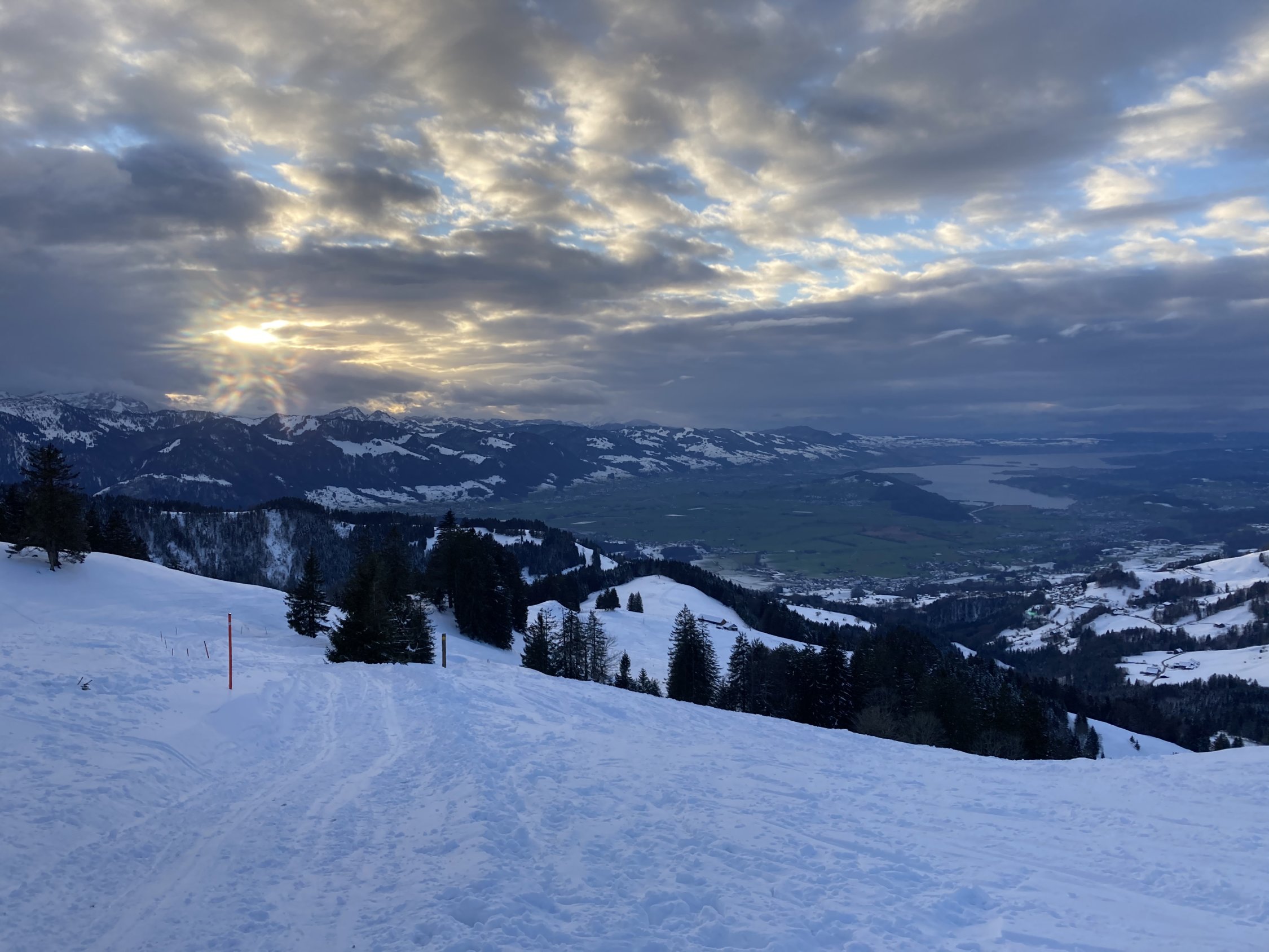 Abfahrt über Nüzimmer gut. Über weite Teile gesetzter Pulver auf etwas Unterlage. Im untersten Hang oberhalb Cholwald muss man die Linie etwas suchen, aber es geht ohne Steinkontakt.