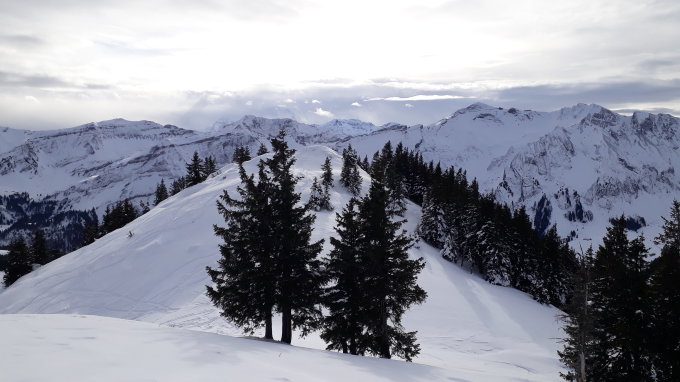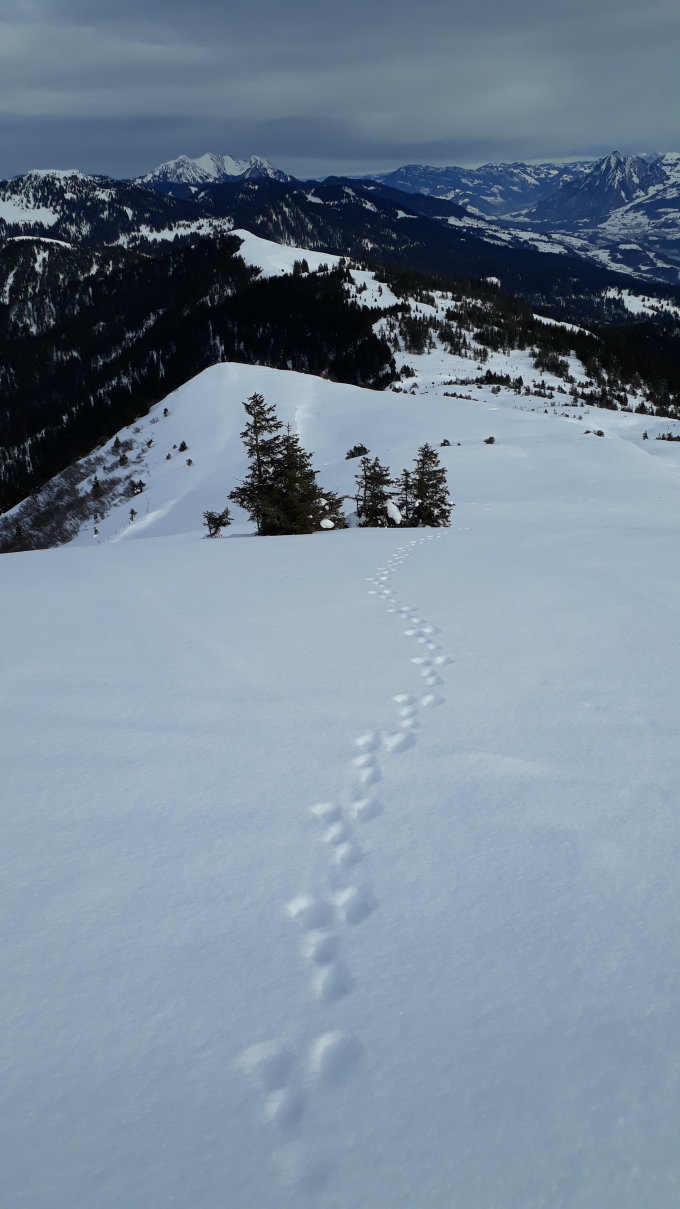 Schöner Pulverschnee, auf Gipfel oft verblasen. Z.T. fehlene Unterlage. Bleikenchopf und Teilstück von Alp Nünalp bis Loo mussten wir spuren. Karte immer griffbereit, da grosses Gebiet Wildruhezone ist. Ist aber zudem vorbildlich markiert. Abfahrt vom Bärenturm nordseitig (rotweisser Bergweg) direkt zum Sattelpass gefahren (steil, dafür Gegenaufstieg umgangen ;-)). Sattelpass bis Strasse Stäldeli perfekte Abfahrt im Pulver :-) Stäldelistrasse auch gut fahrbar, da schneebedeckt.