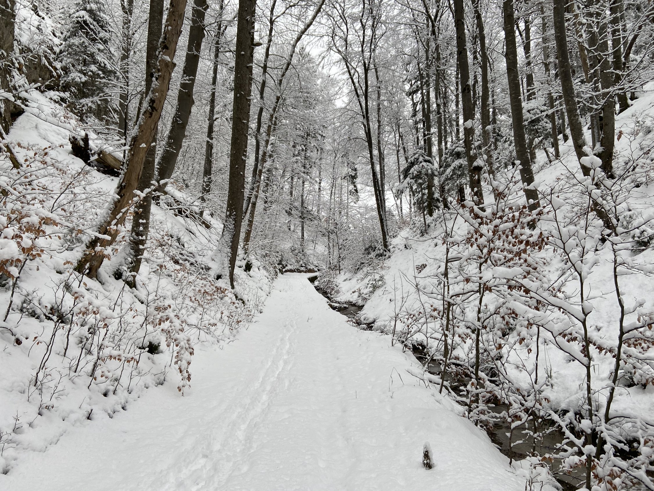 Erstbefahrung der Lauchflue mit Skiern im Gipfelbuch.ch. Ich habe vor einigen Wochen bei dünner Schneeauflage das Gebiet südwärts der Lauchflue zu Fuss erkundet und eine günstige Route mit Skiern bis zum Gipfel gesucht. Hier ist meines Erachtens die Ideallinie. Nach etwa 100 m am Humbelbach entlang in herrlich verschneitem Gelände lasse ich den Trubel am Parkplatz hinter mir und es beginnt eine traumhafte Tour durch tief verschneites Gelände. Die Traverse oberhalb des Hochlegers Rehagweid nicht zu flach anlegen, sondern höher als nötig (im Hinblick auf das gegenüberliegende Gatter), damit man eine zügige Abfahrtsspur auf dem Rückweg hat. Ich habe die Traverse im Aufstieg zu flach angelegt und so wars auf dem Rückweg kurzzeitig ein Geschiebe und Gewühle im kupierten Gelände. Die Felle wollte ich aber für dieses kurze Stück nicht mehr montieren. Um den Gipfel der Lauchflue ein traumhafter Winterwald. In der Abfahrt im Lauch gute Schwünge möglich und zwei-, dreimal Steine knirschen. Auf dem Rest der Route in flacherem Gelände kann man es gut laufen lassen. Eine wundervolle Tour direkt hinter der Haustüre!