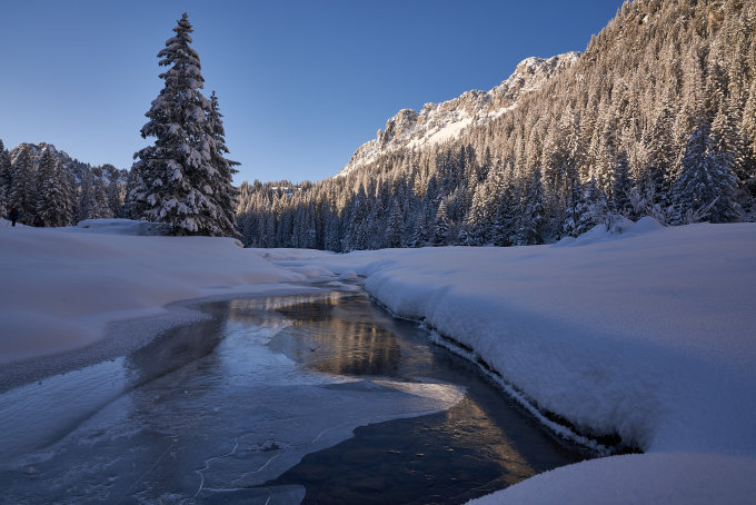 Morgens um 9:30 Uhr beim Parkplatz im Menigrund -11°C. Die Tour ist gut eingeschneit und durchgehend mit Schii begeh- und befahrbar. Das Wetter war auf der ganzen Tour sonnig und kalt.
